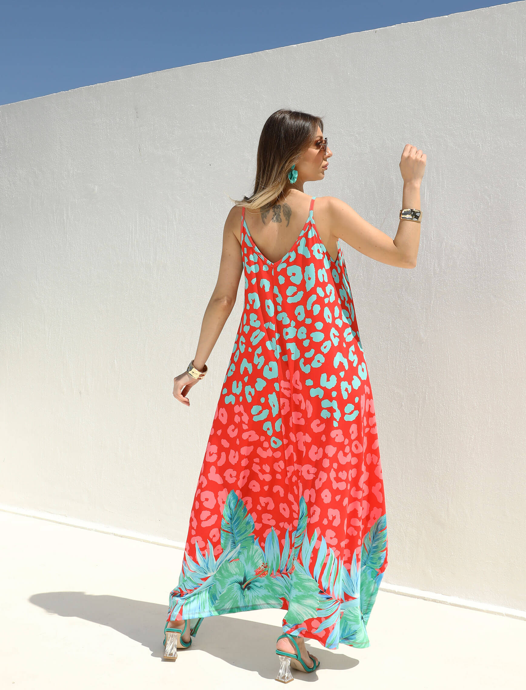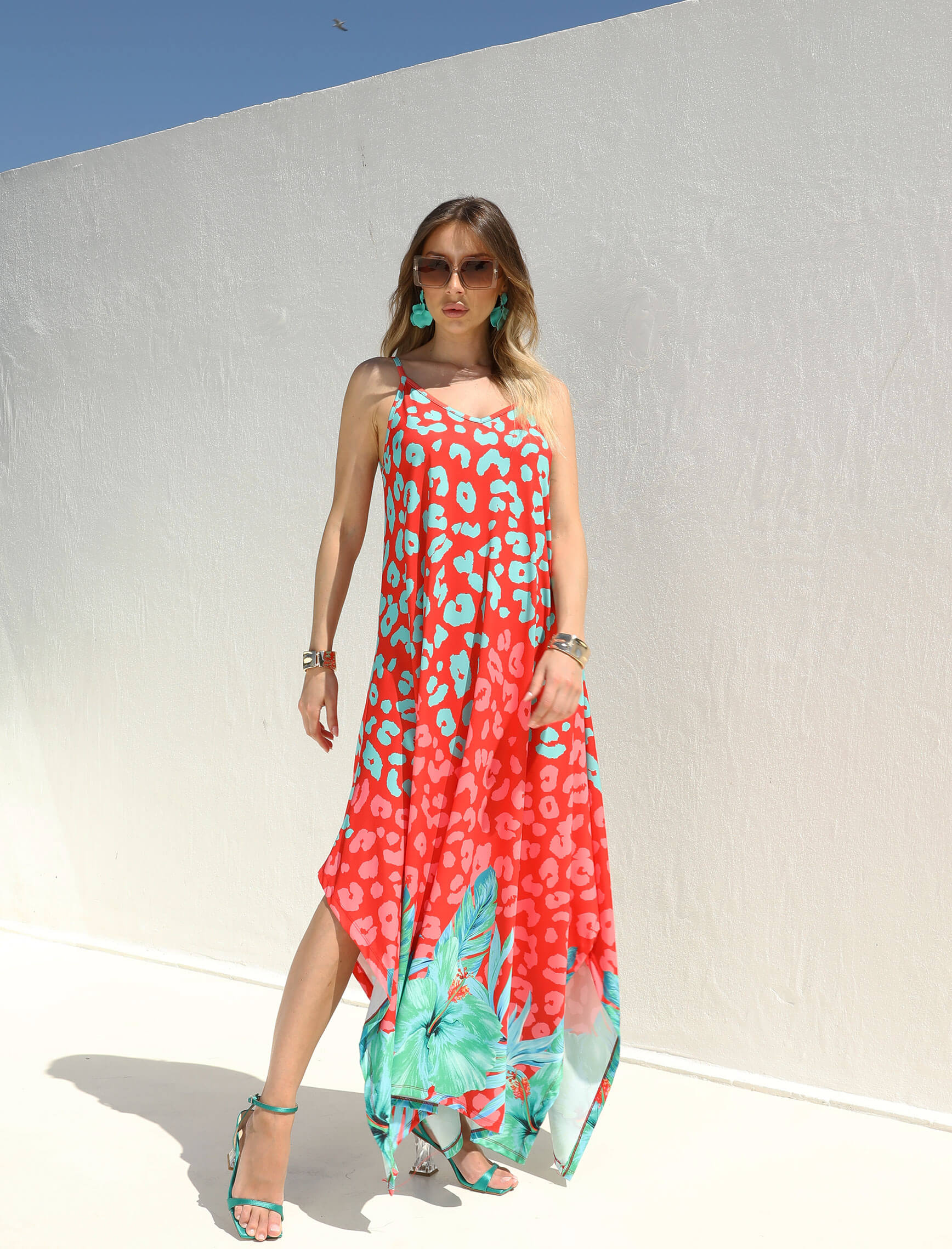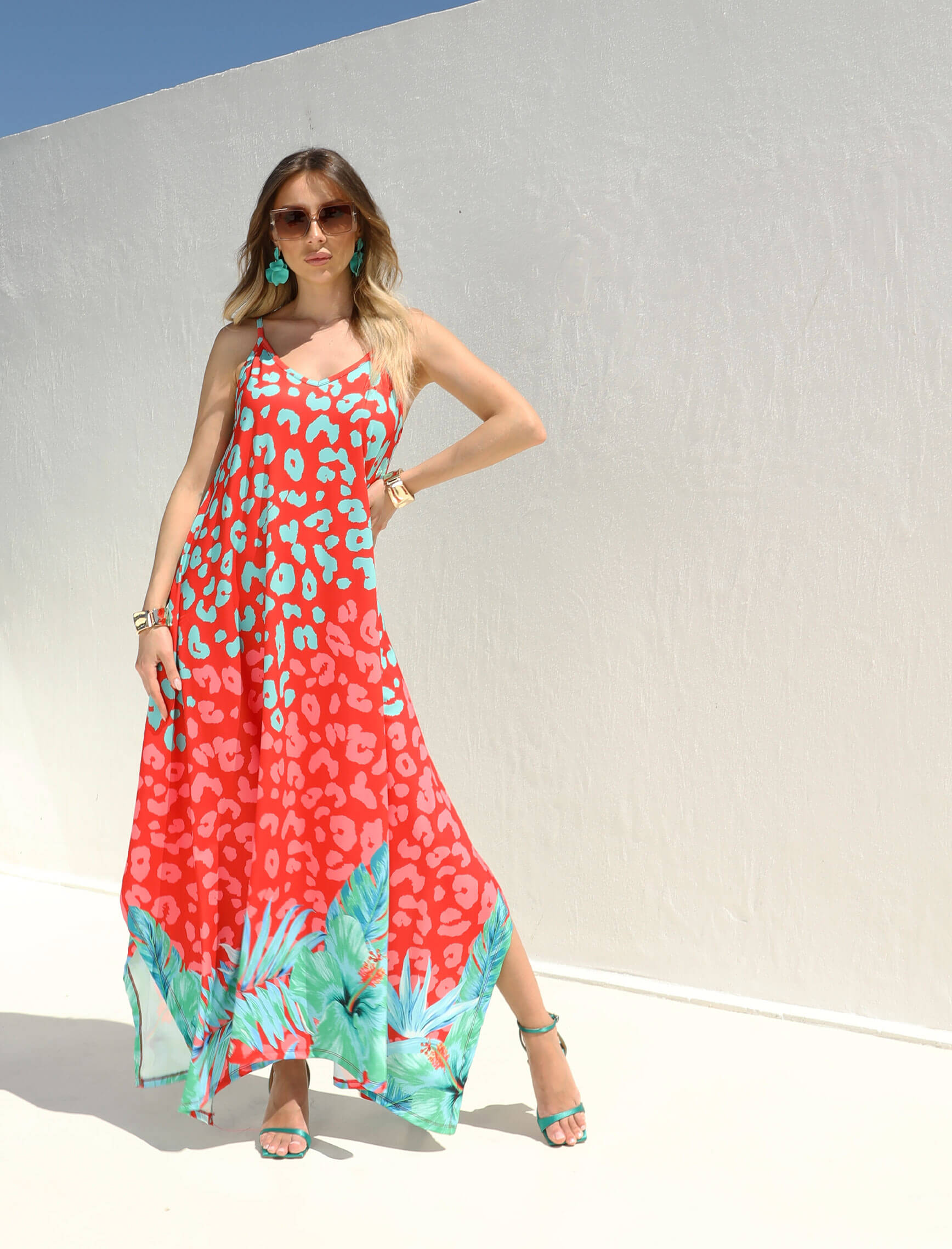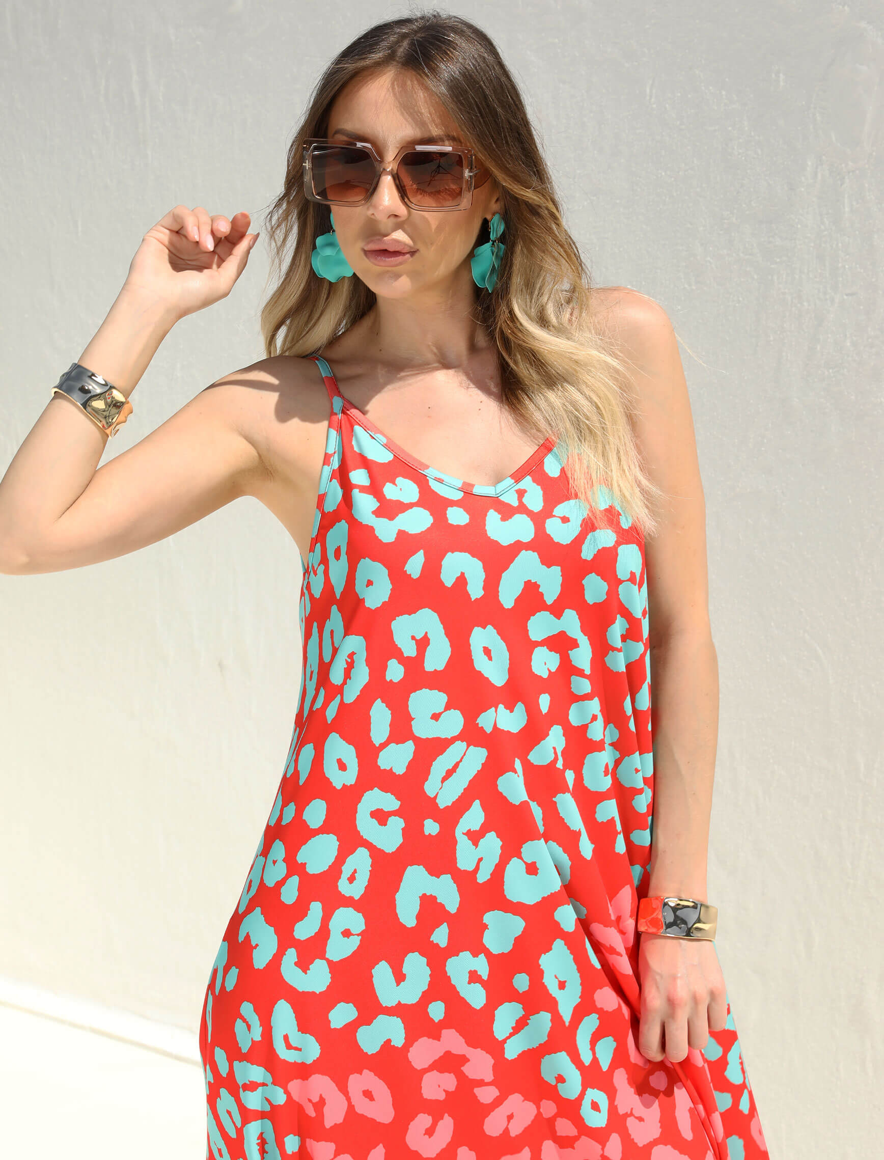 Mercan Cherry Leopardesen Elbise