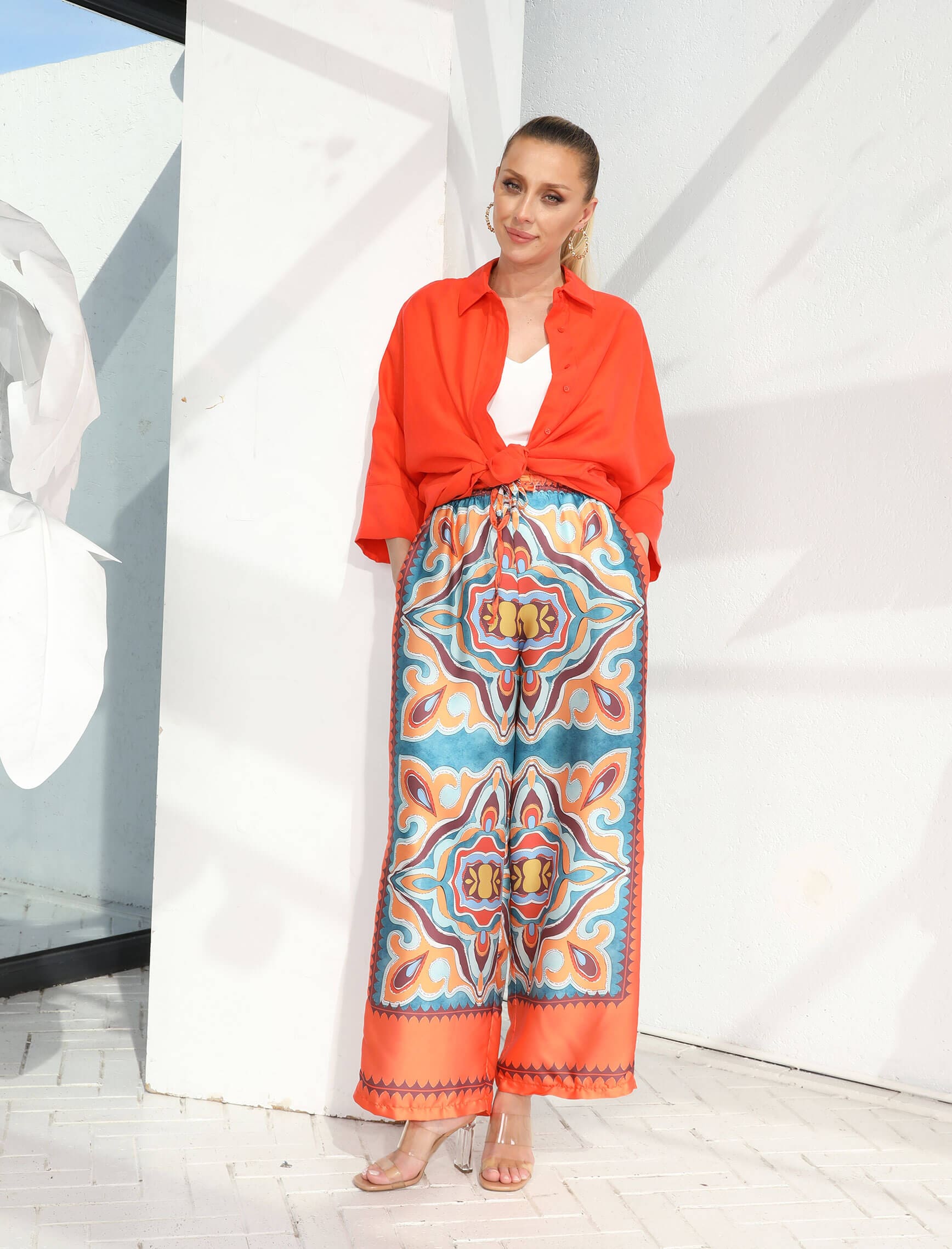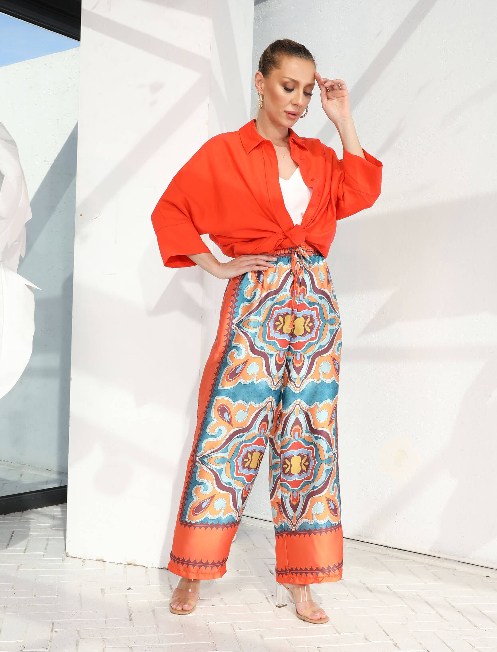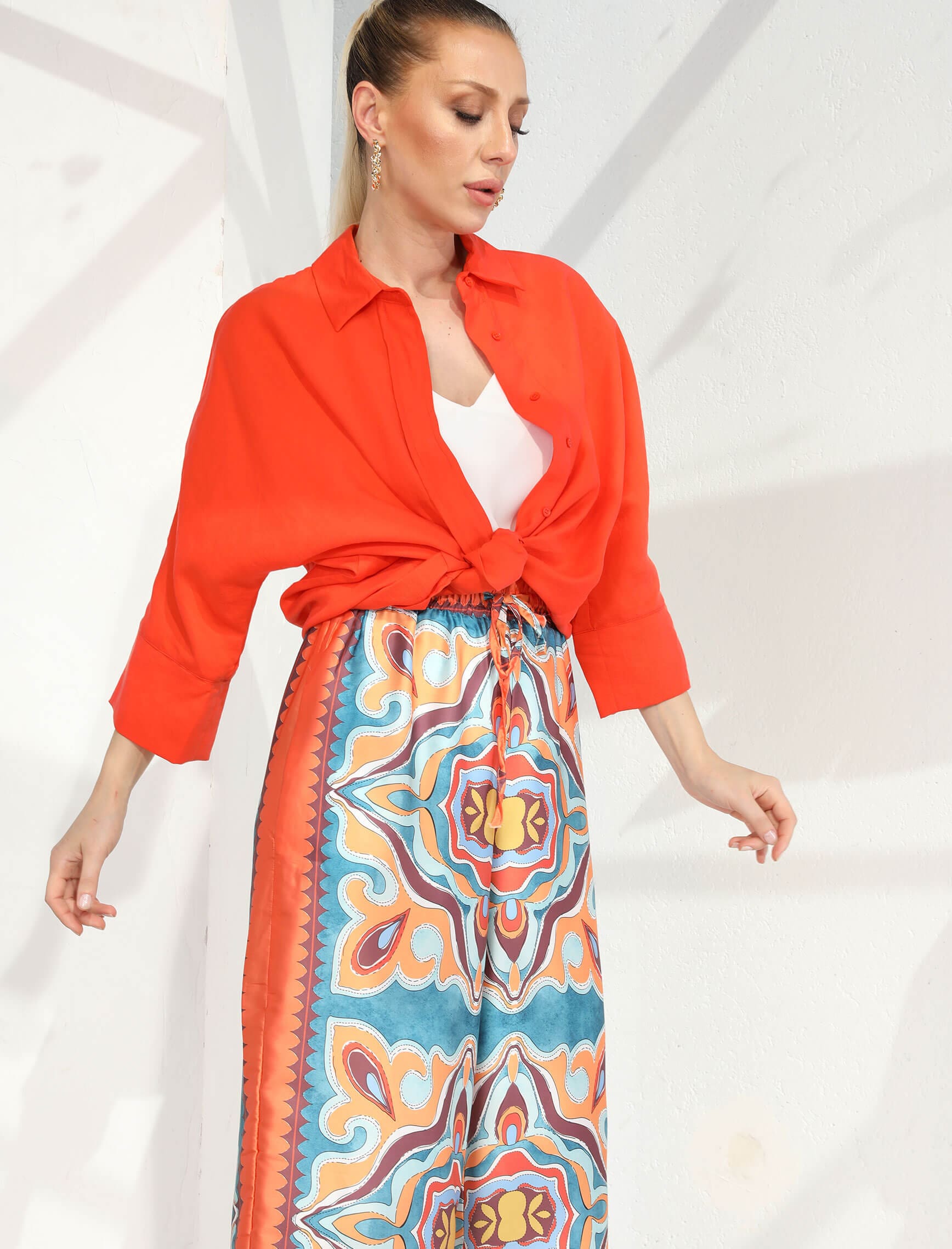 Mercan Desenli Saten Elite Pantolon