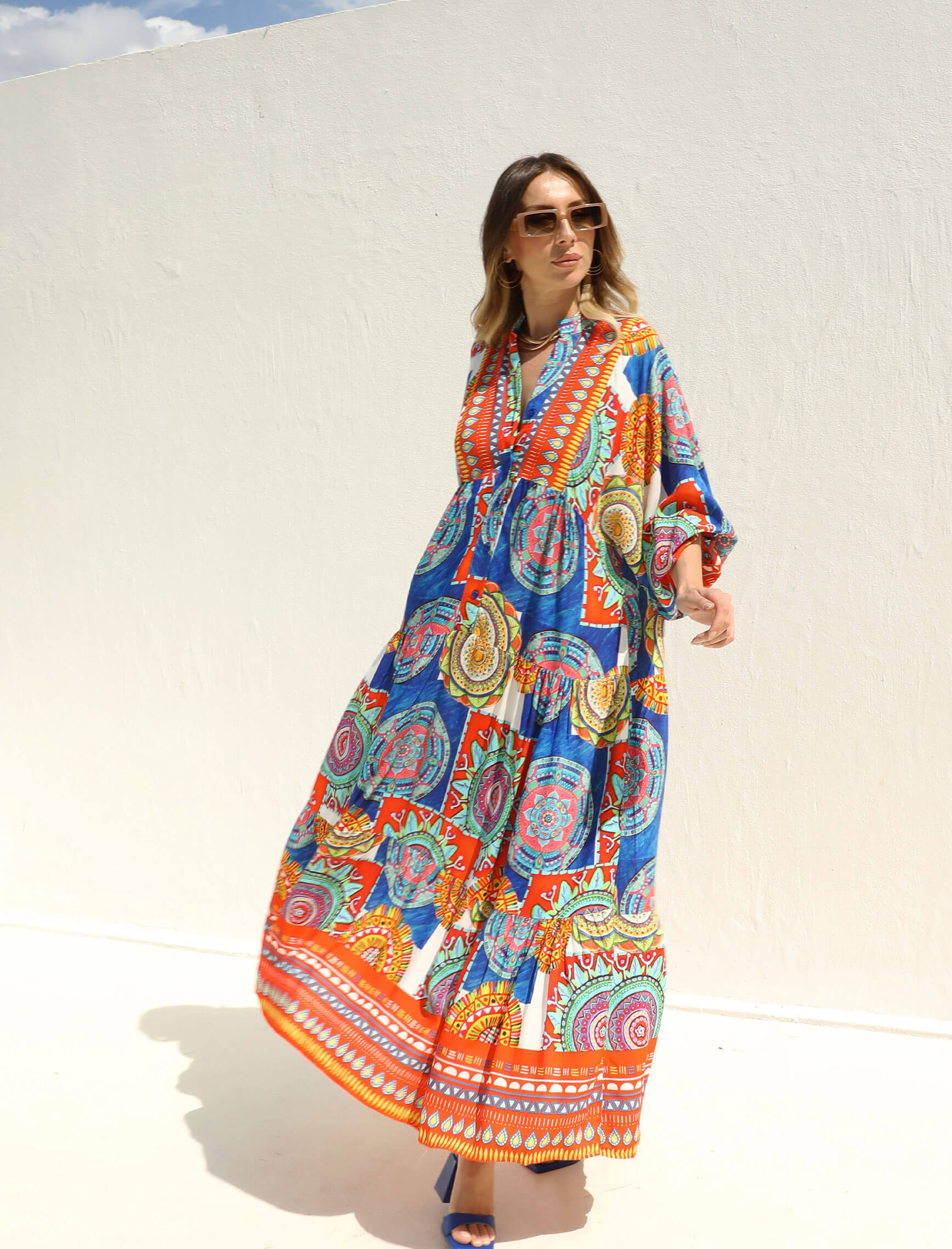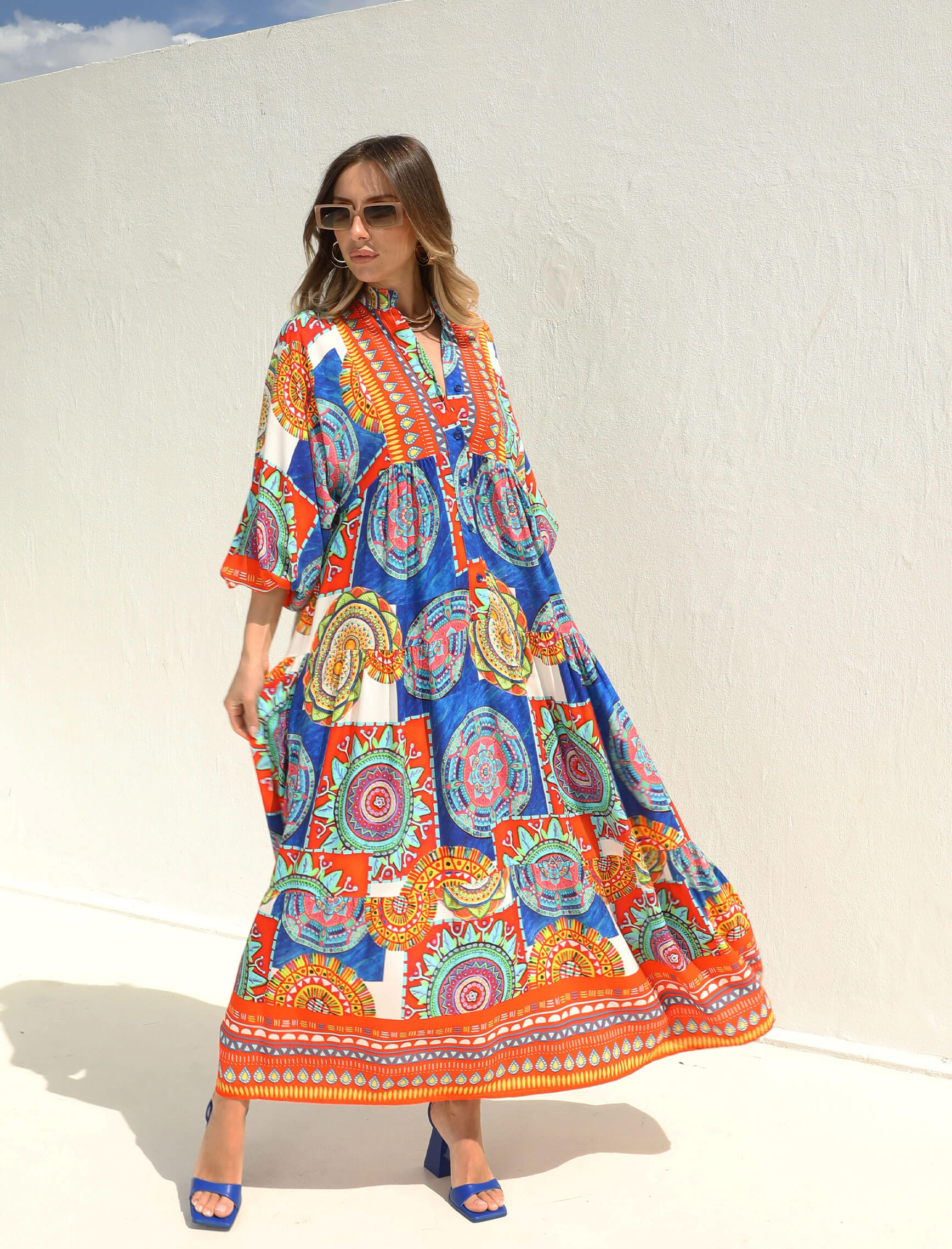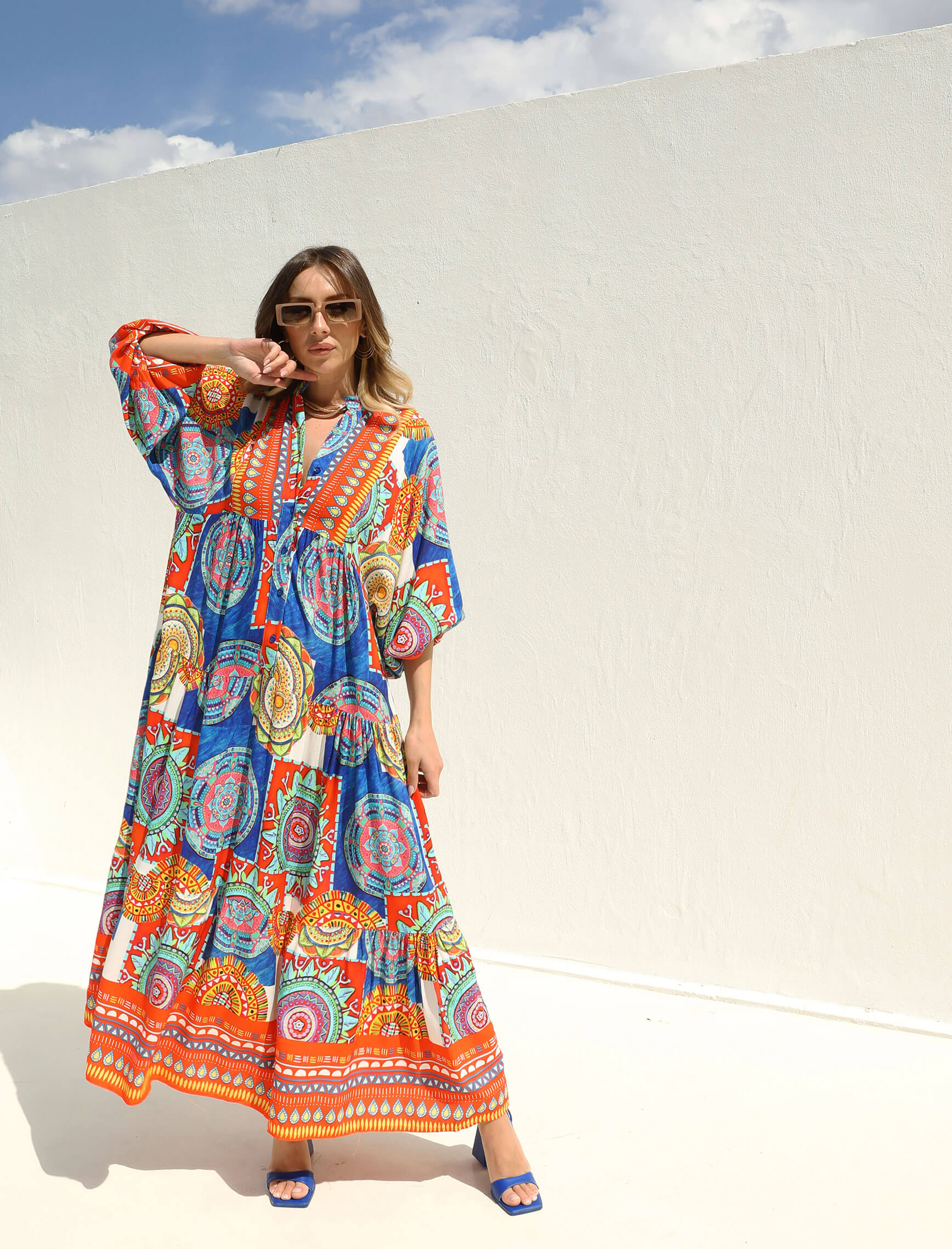 Mercan Saksrengi Renkli Mandalay Elbise