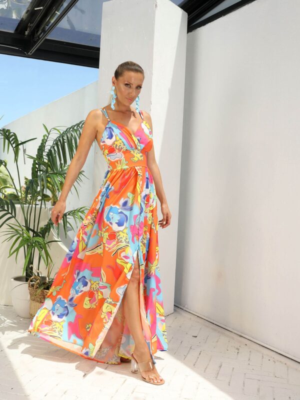 Turuncu Renkli Çapraz askı Uzun Elbise