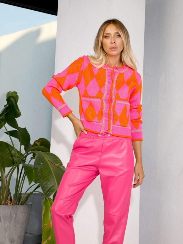 Pembe Simli Baklava Desen Hırka
