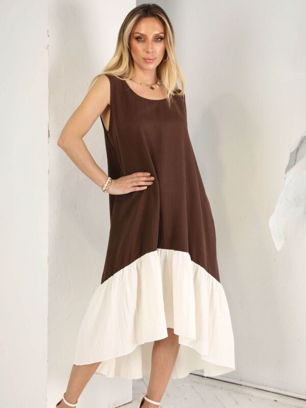 Kahve Tensel Sırt Düğme Jile Elbise