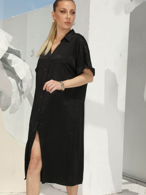 Siyah Şal Desen Jakar Saten Elbise