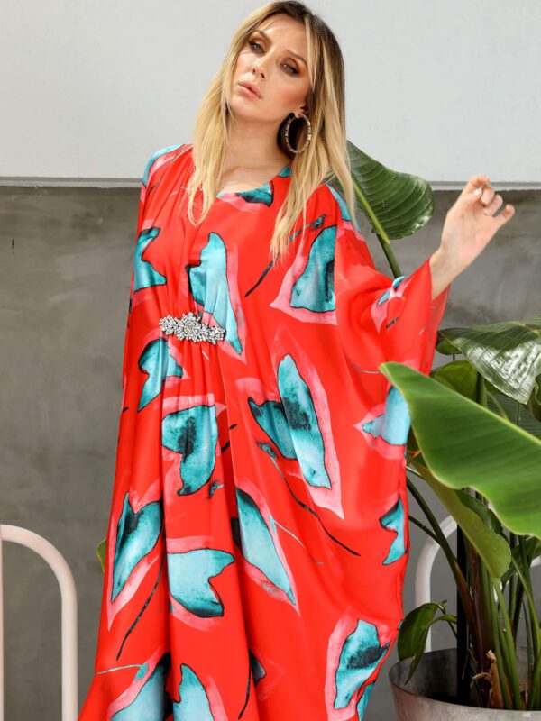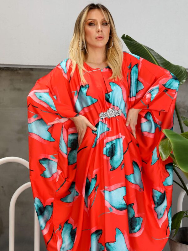 Turuncu Şal Desen Jakar Saten Elbise