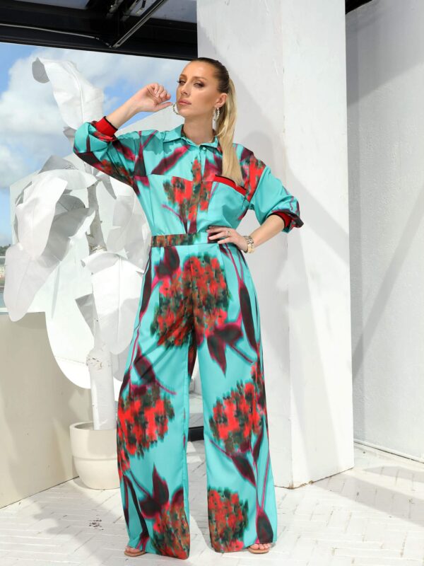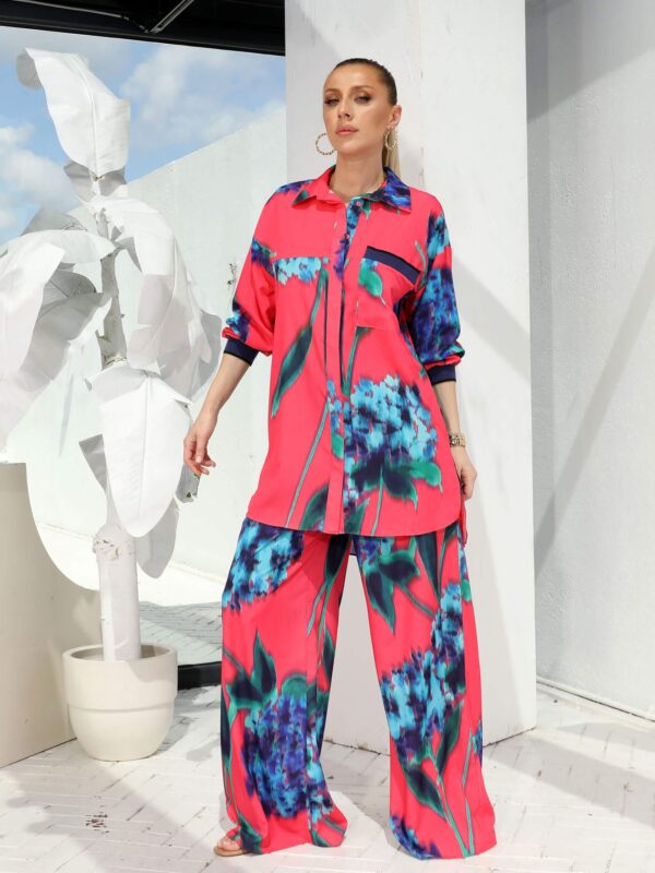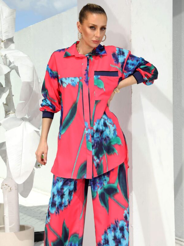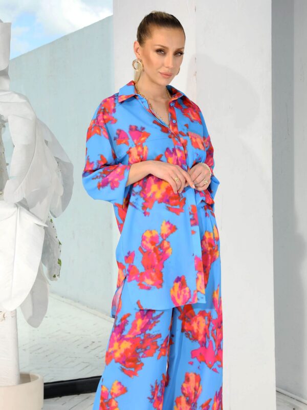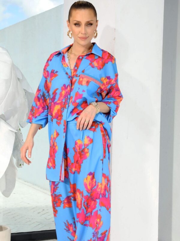 Mercan Mavi Batik Ortanca Pantolon Gömlek Takım