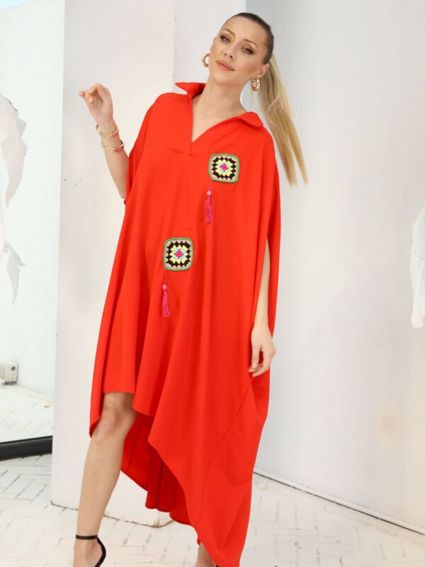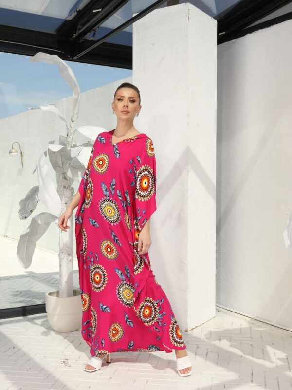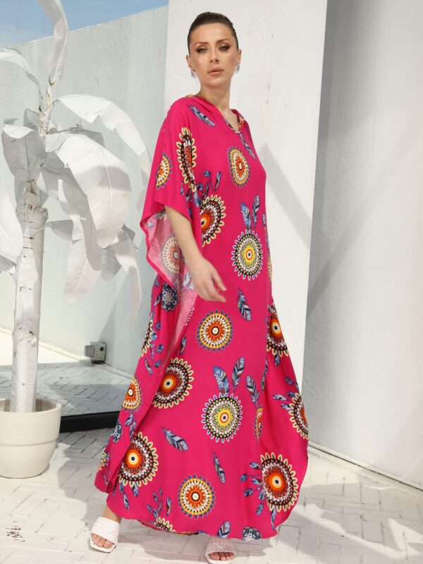 Fuşya Gelincik Desen Askılı Scuba Elbise