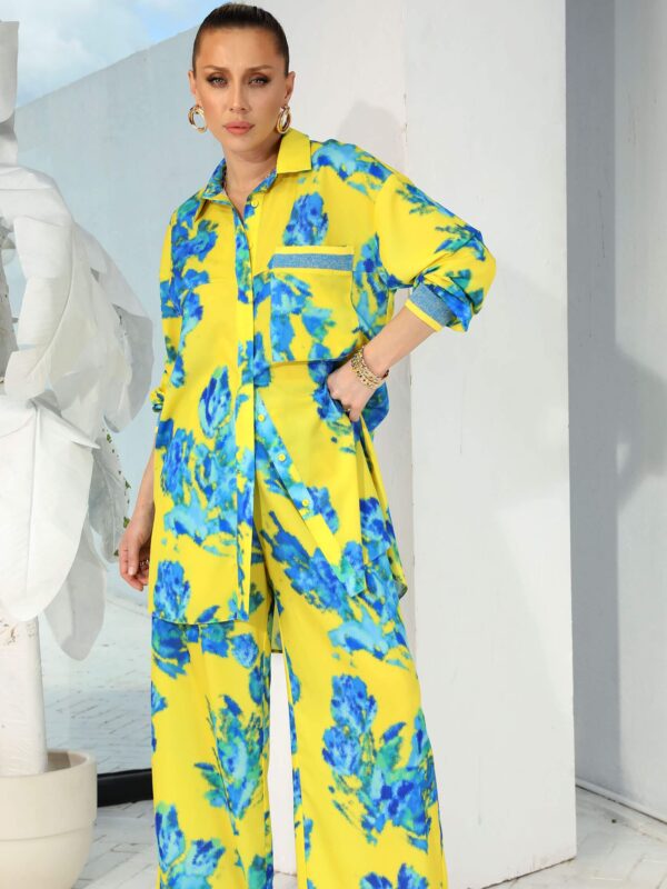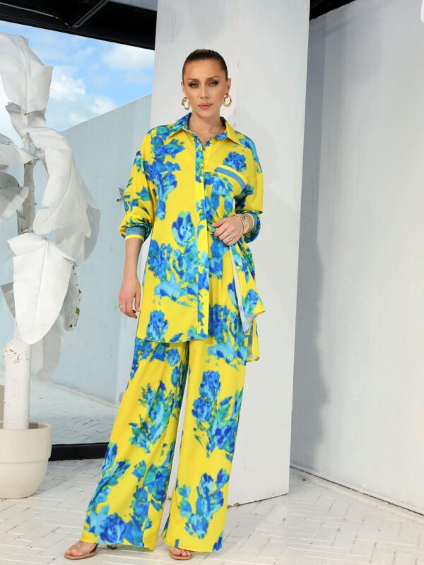 Sarı Mavi Batik Ortanca Pantolon Gömlek Takım
