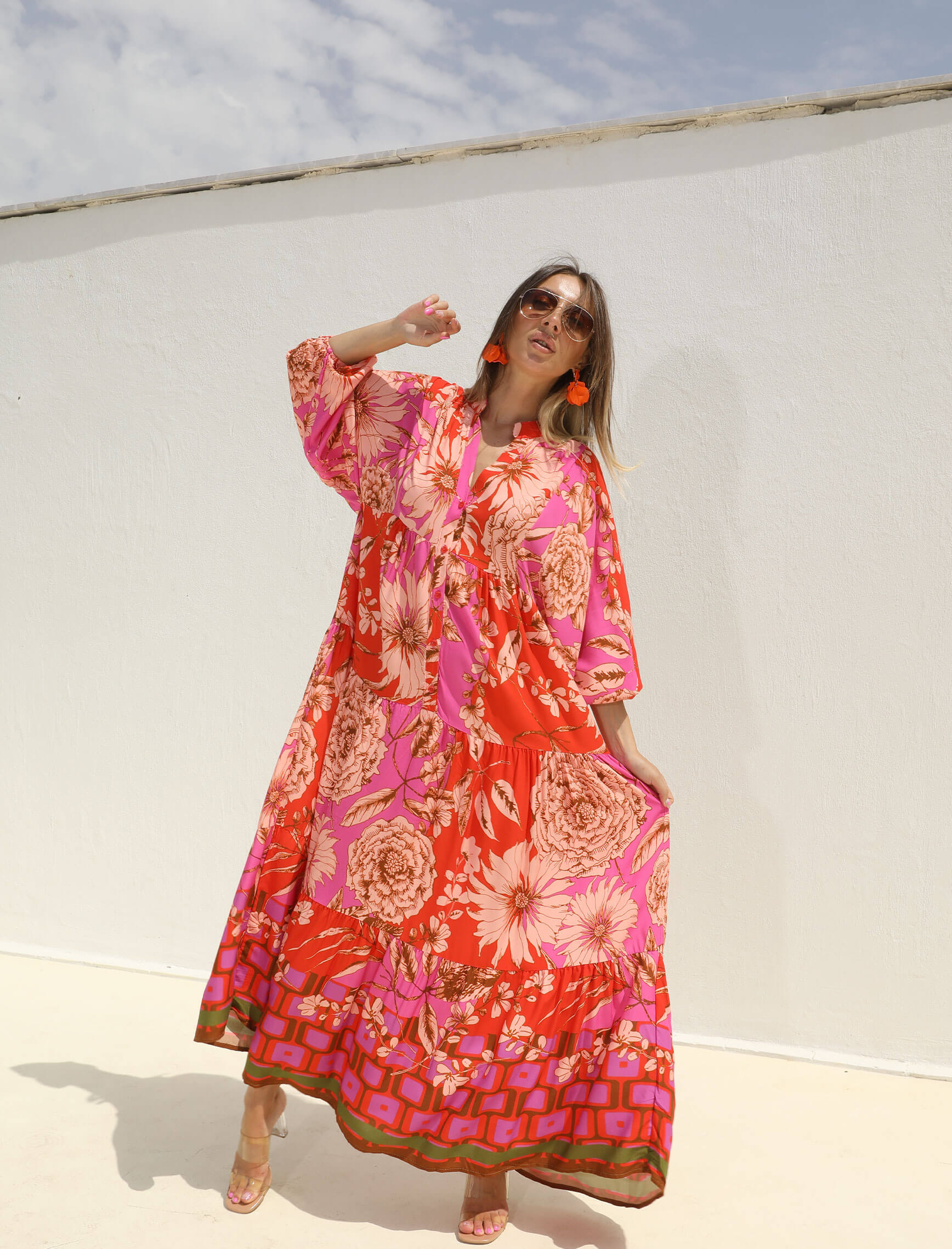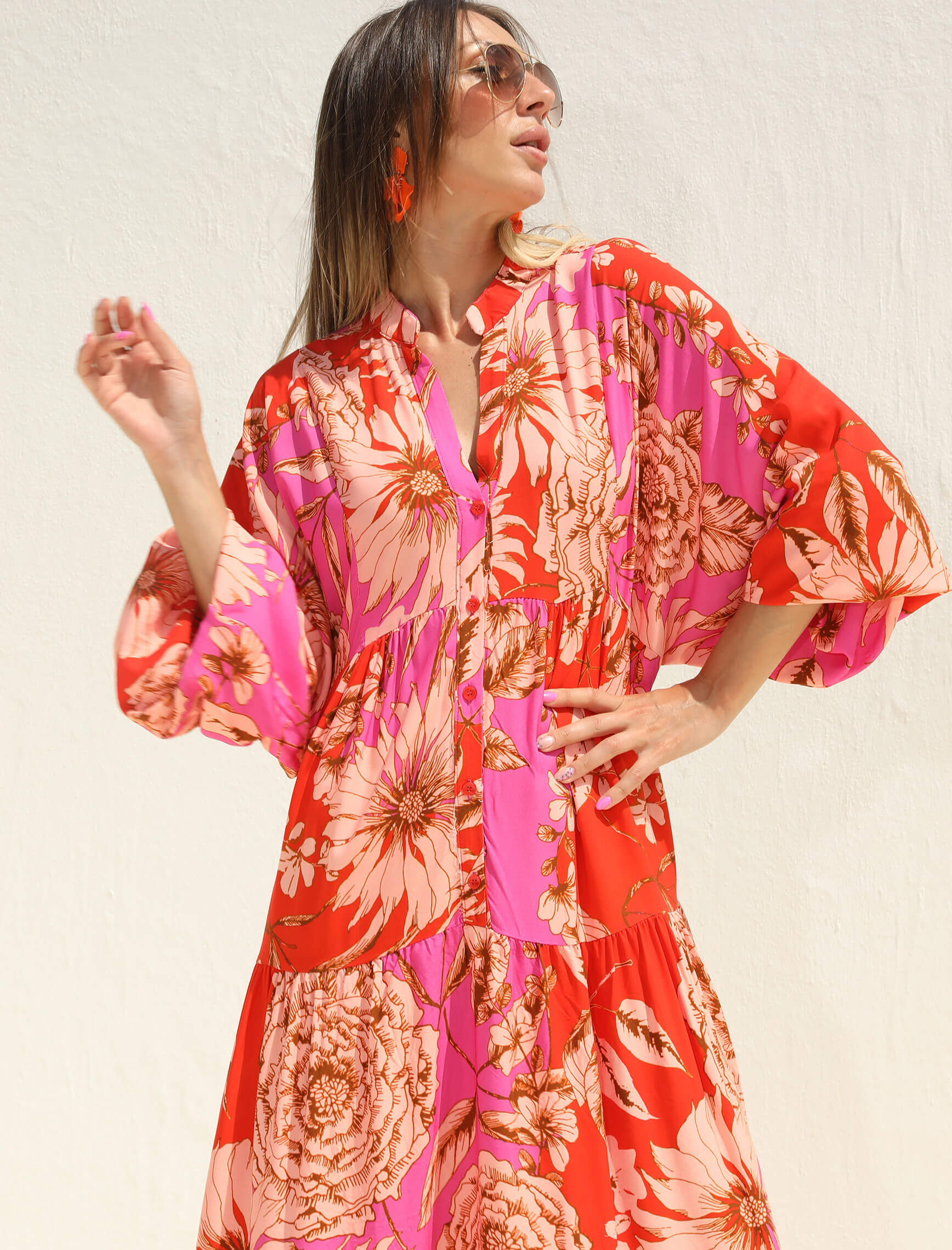 Pembe Mercan Ortanca Elbise