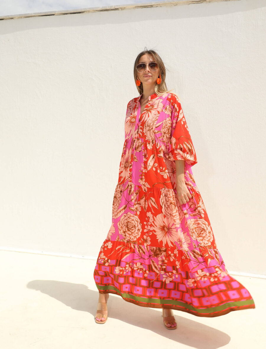 Pembe Mercan Ortanca Elbise