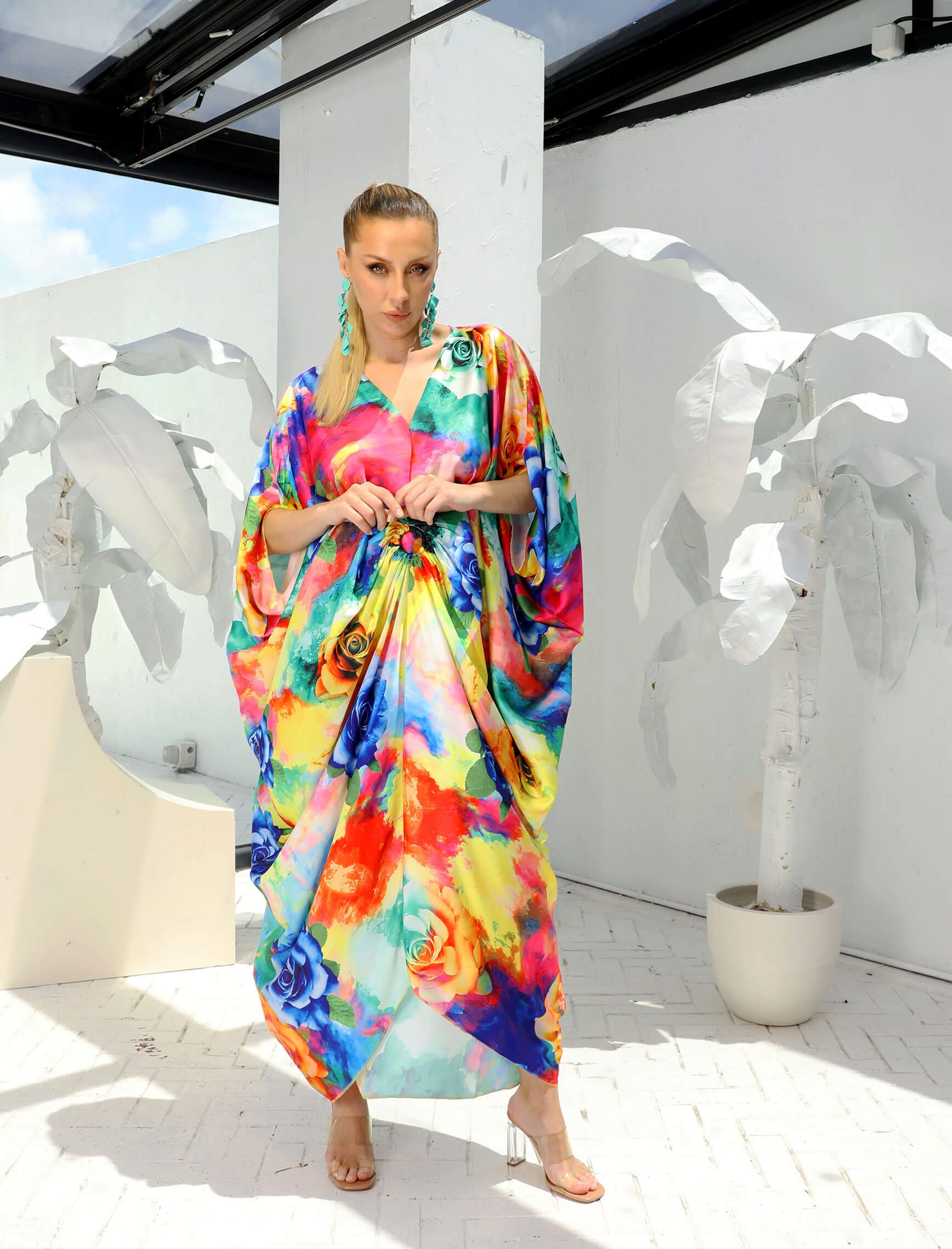 Renkli Gül Desen Messini Elbise