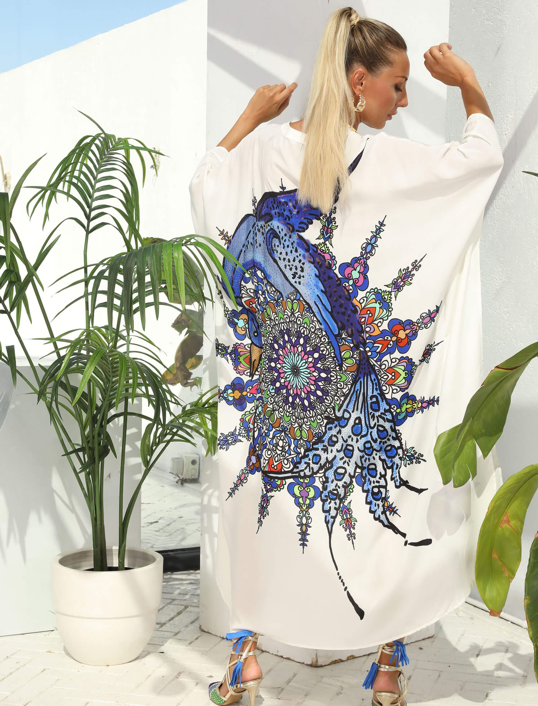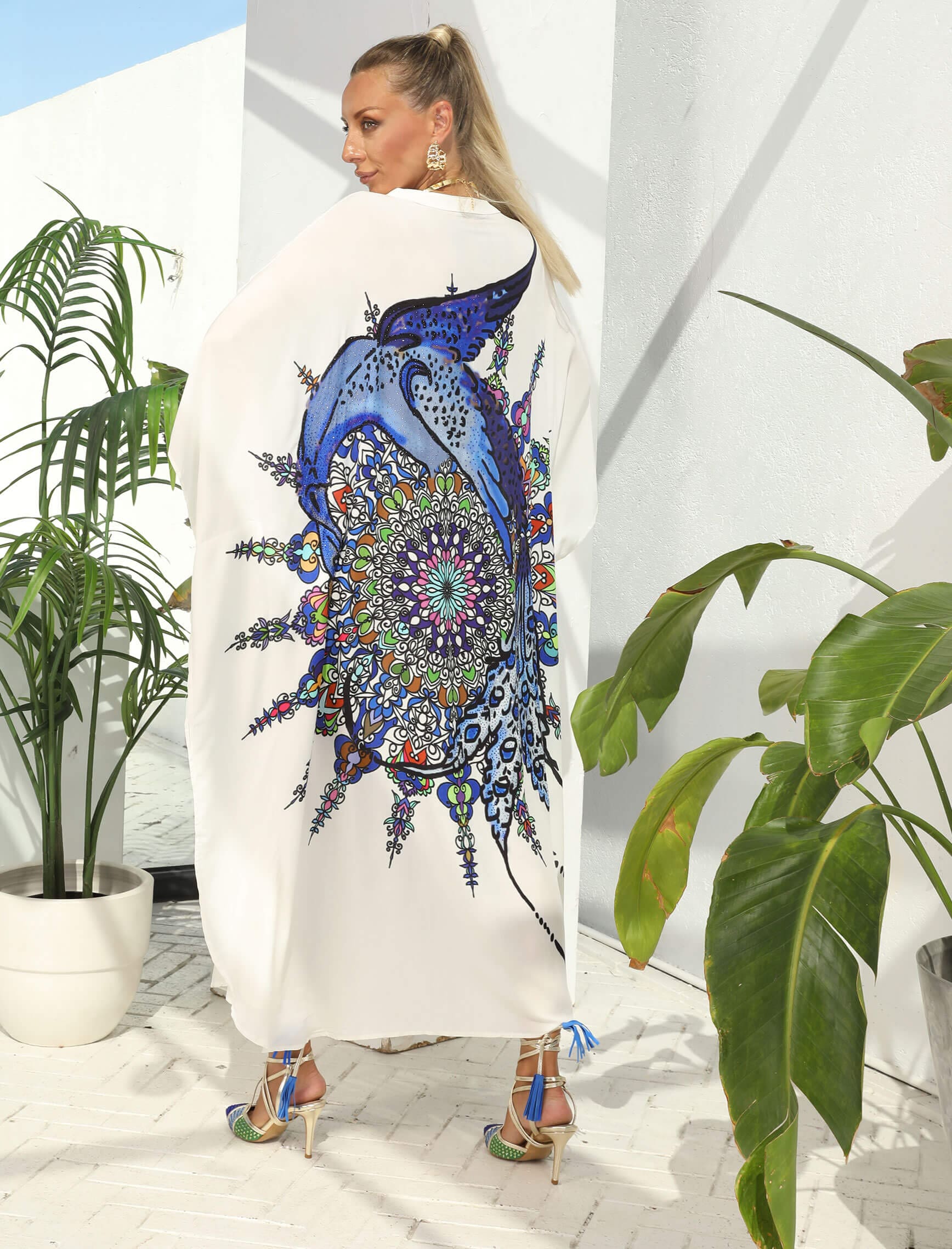 Saksrengi Taşlı Kuğu Kimono-Elbise