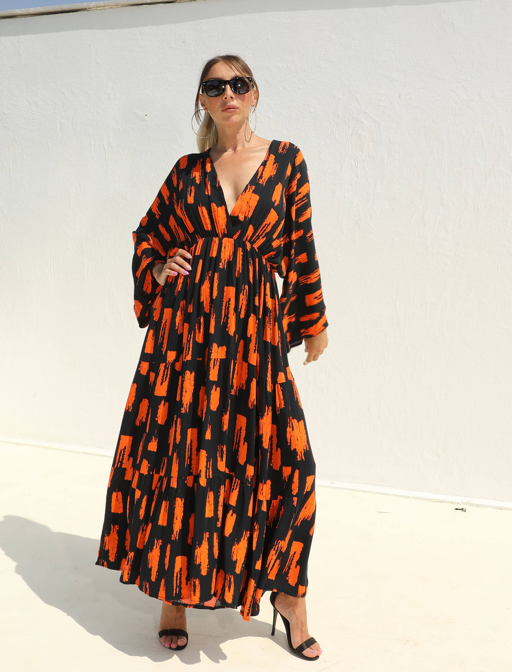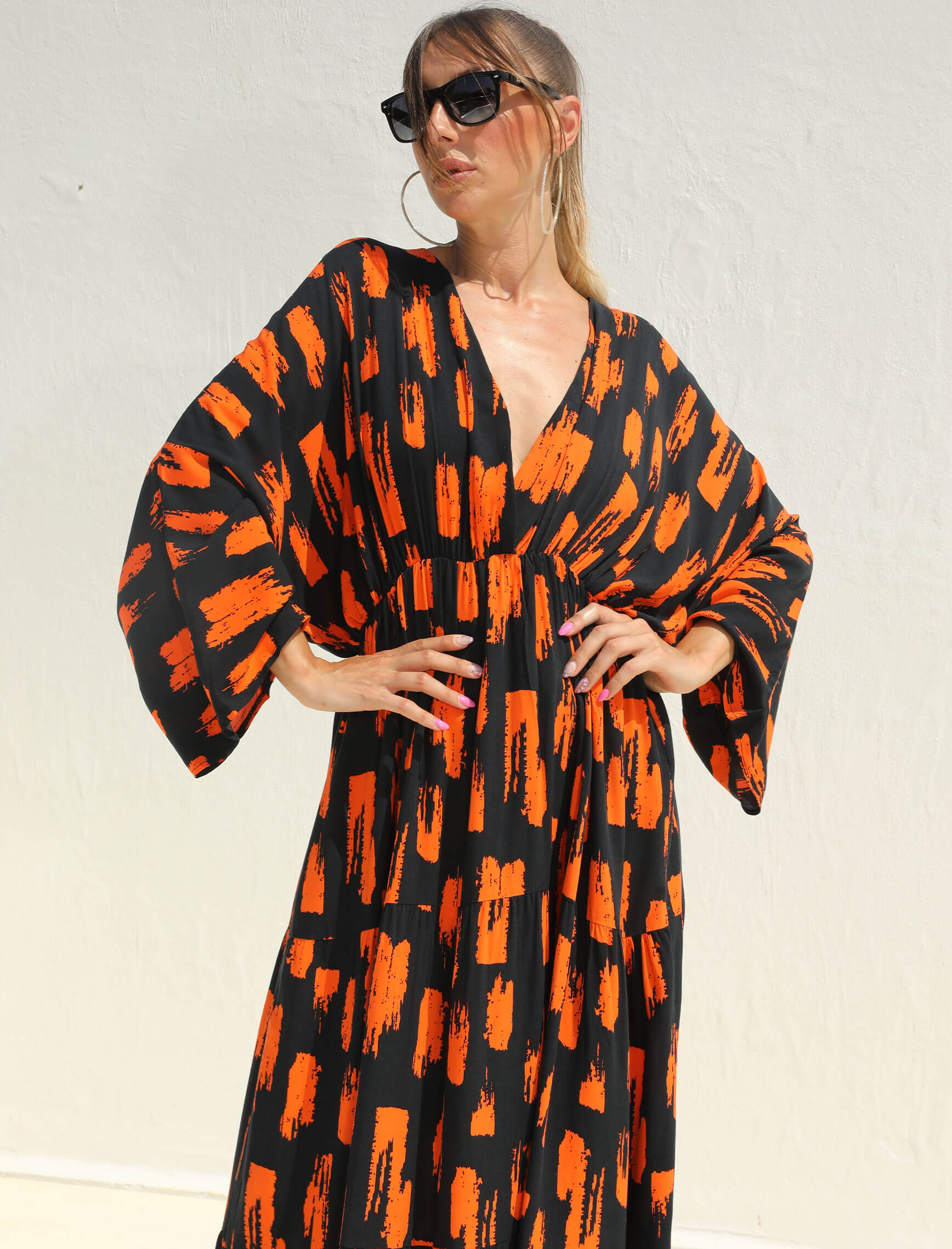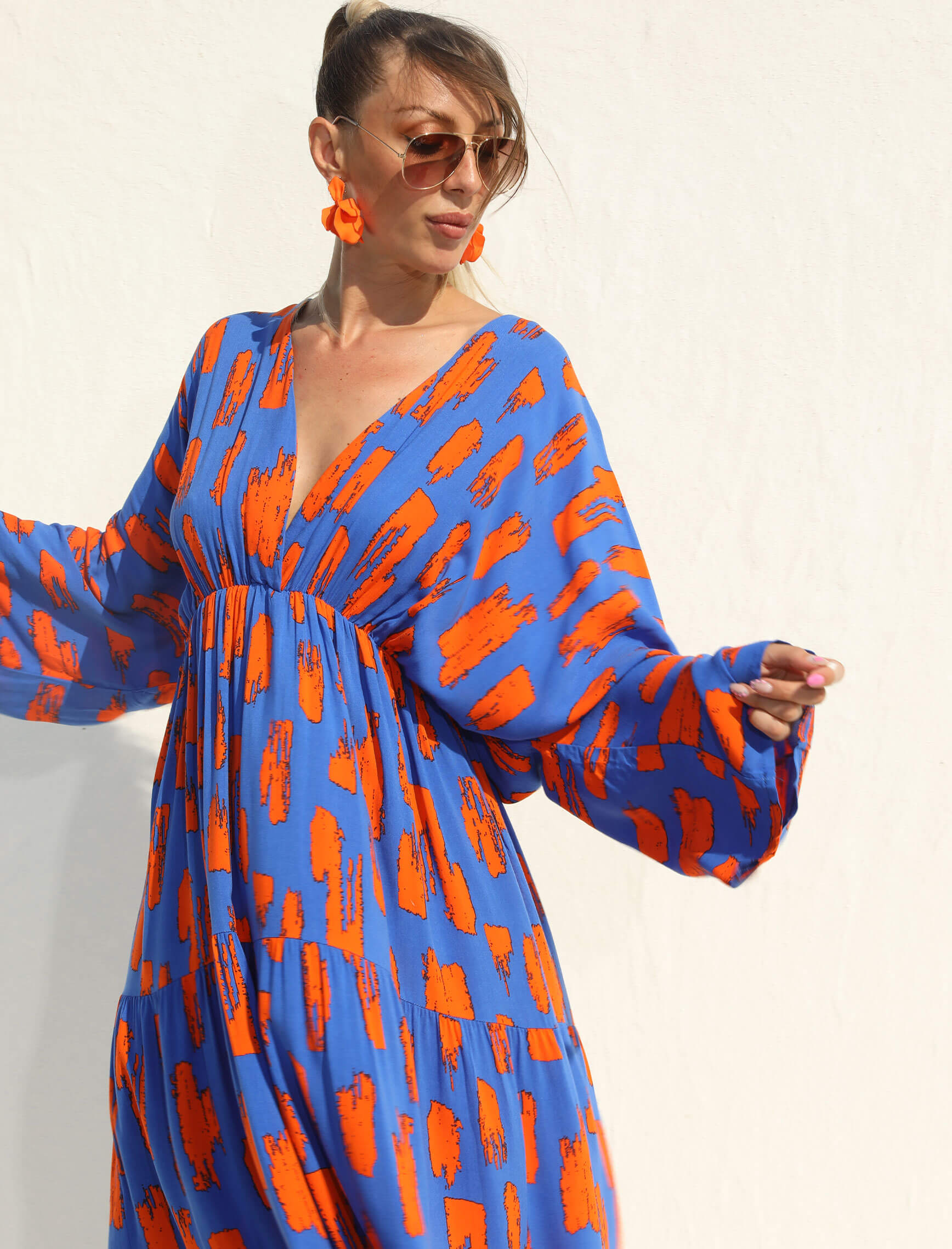 Saksrengi Turuncu Siera Elbise