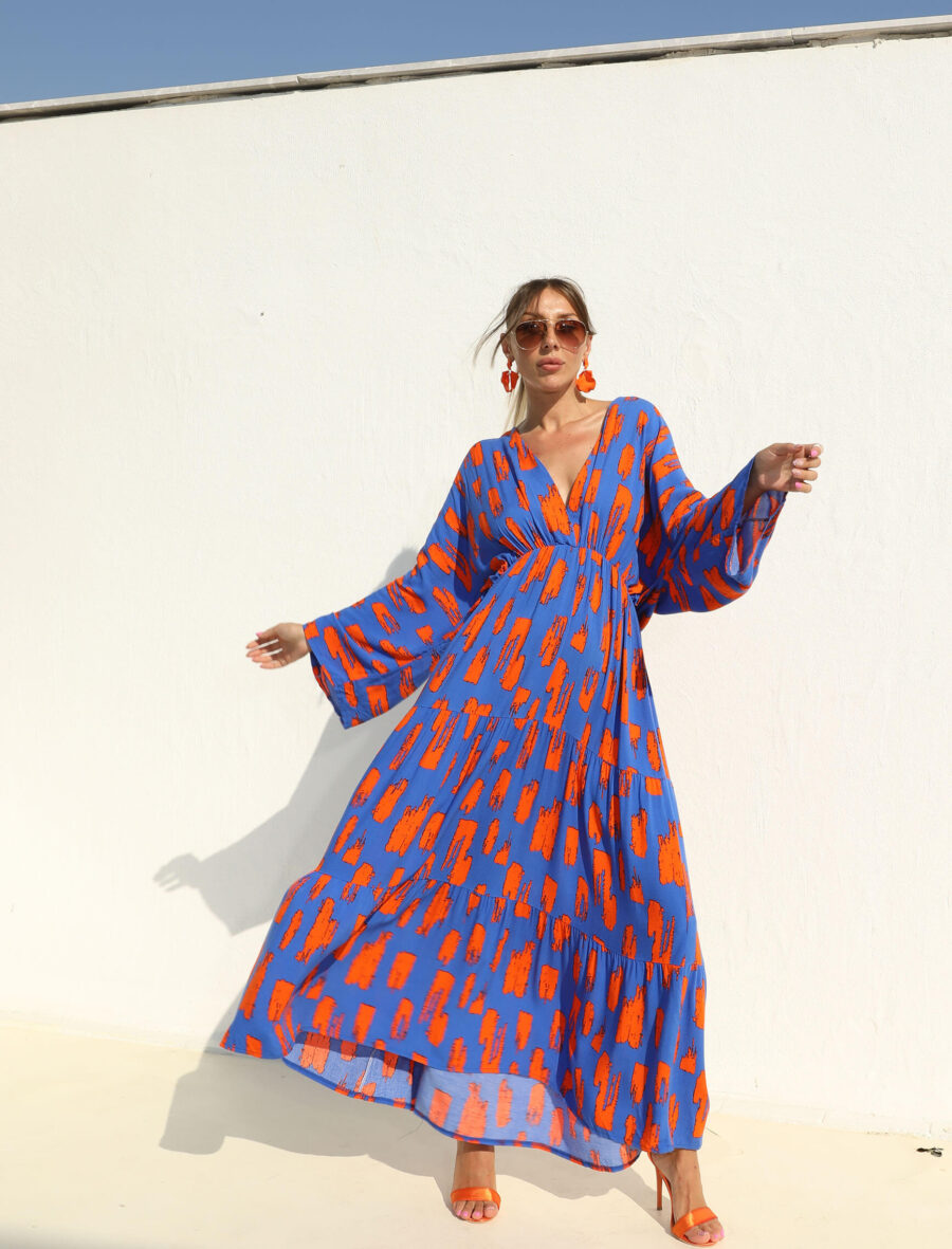 Saksrengi Turuncu Siera Elbise