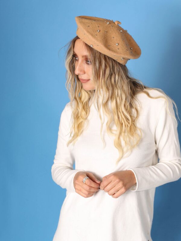 Bej Daire İçi Taşlı Kep