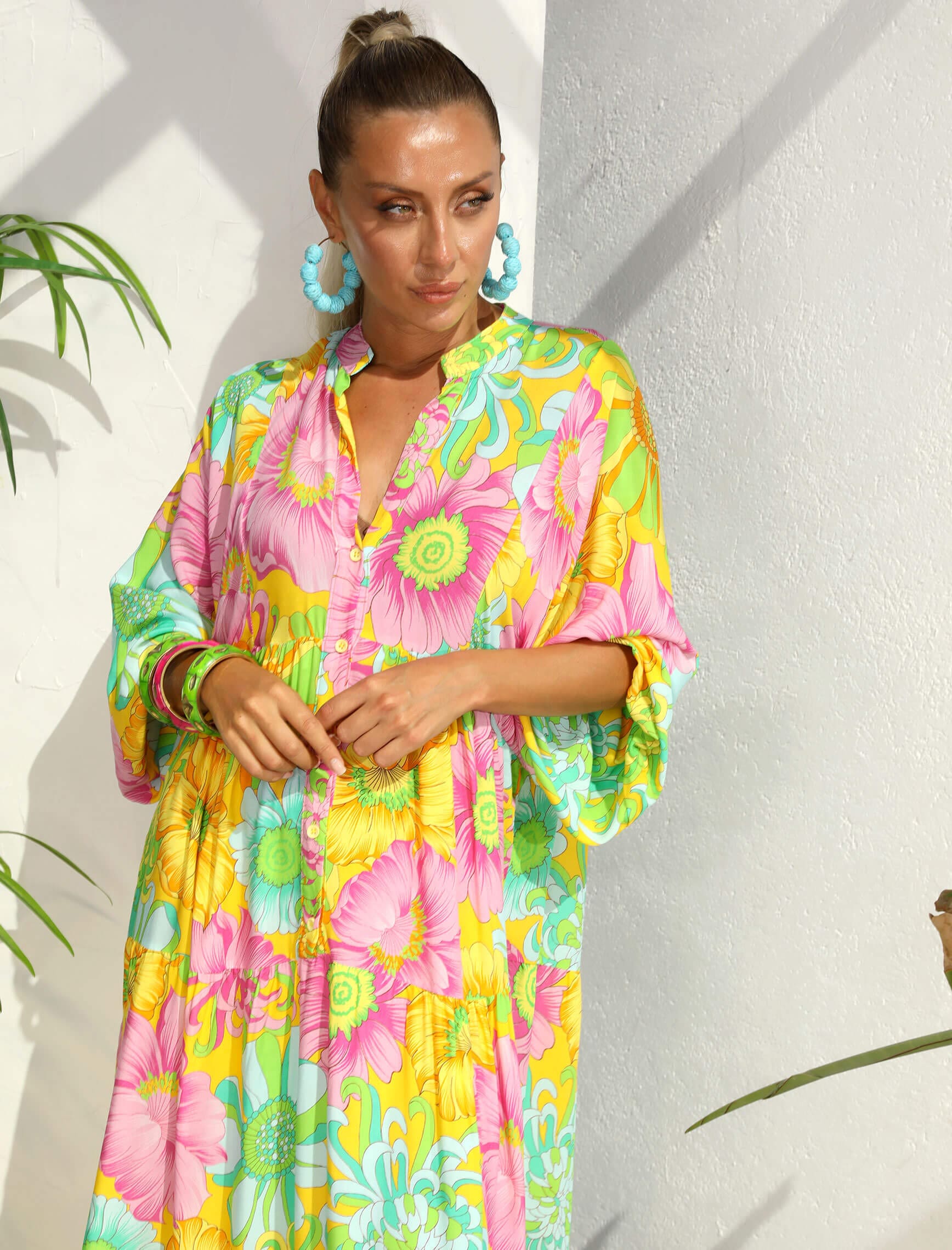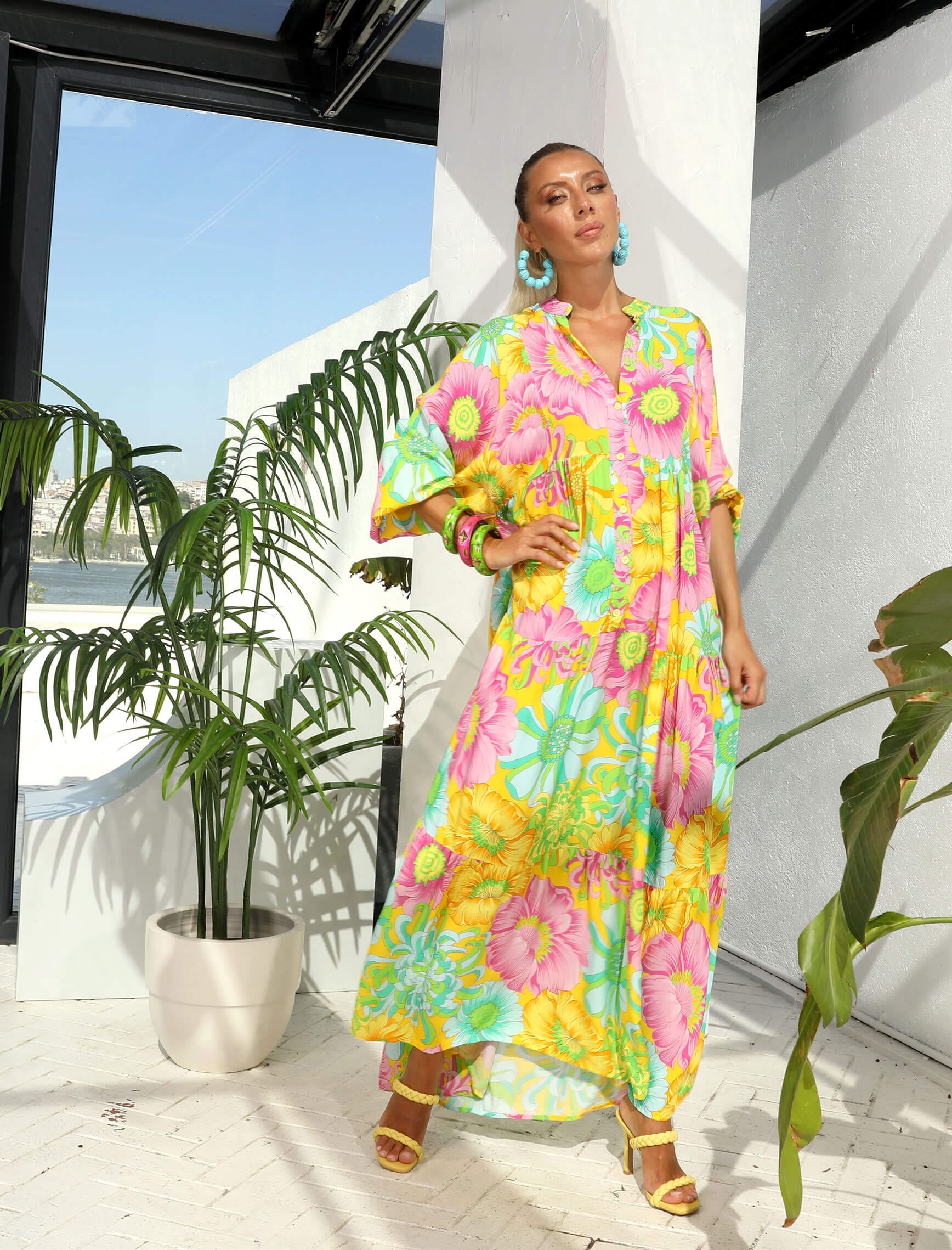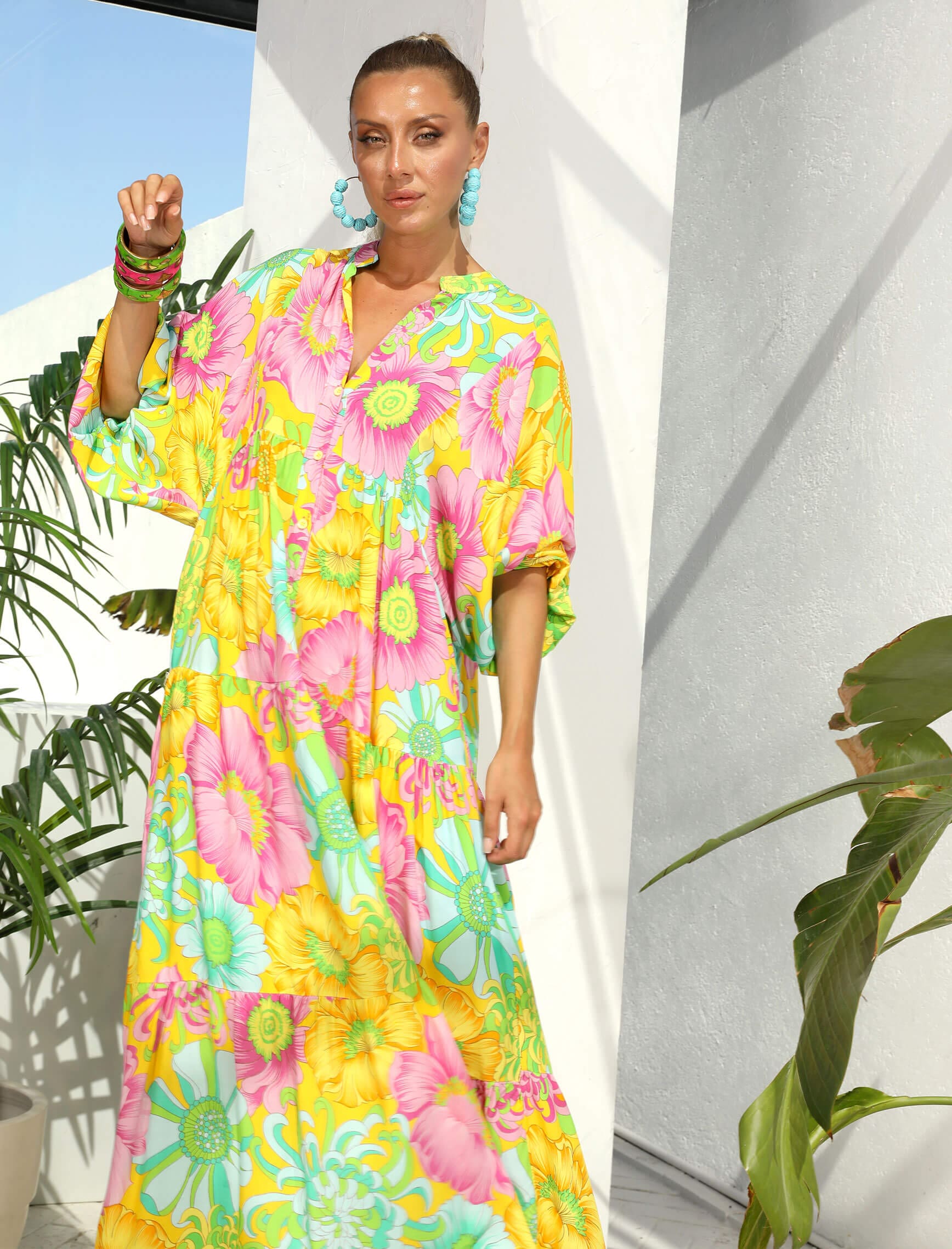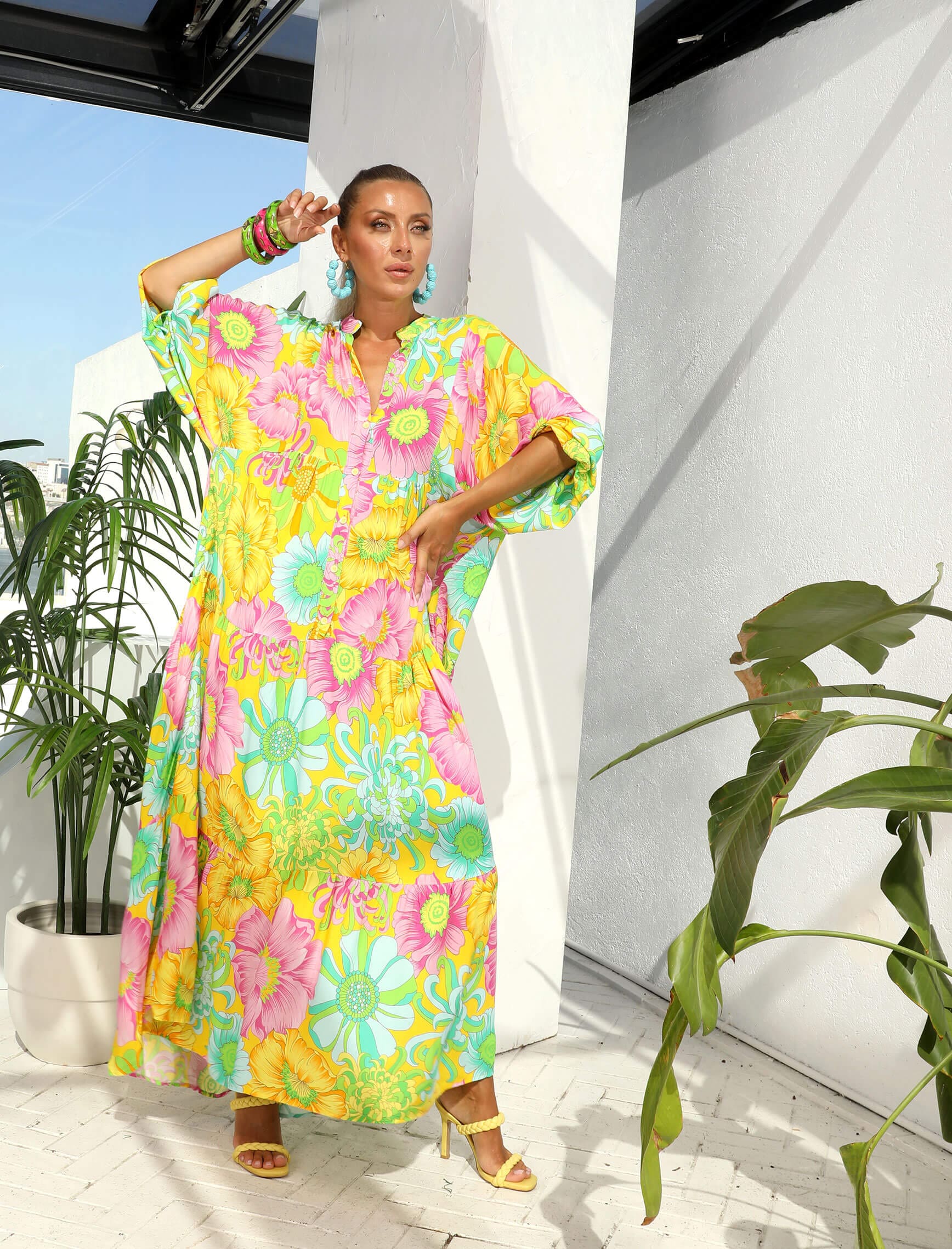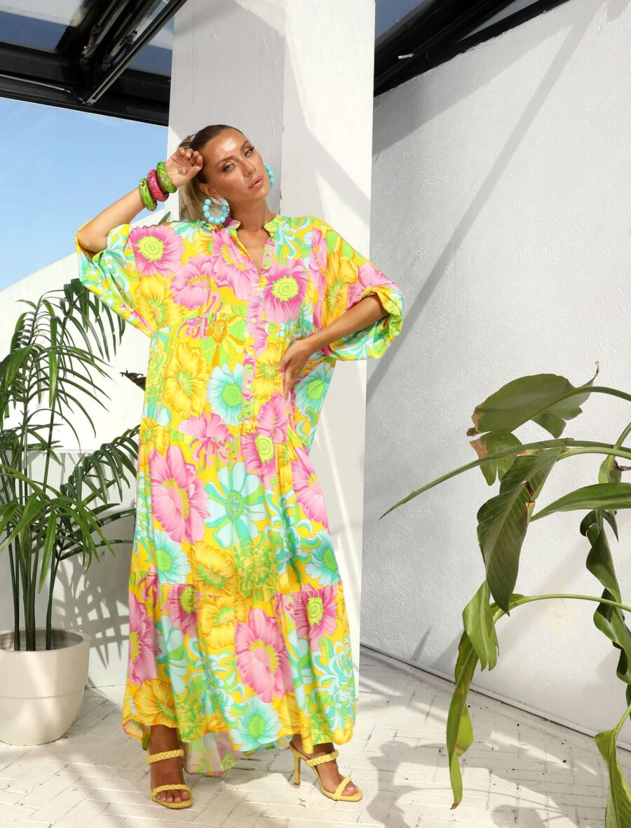 Sarı Pembe Çiçek Elbise