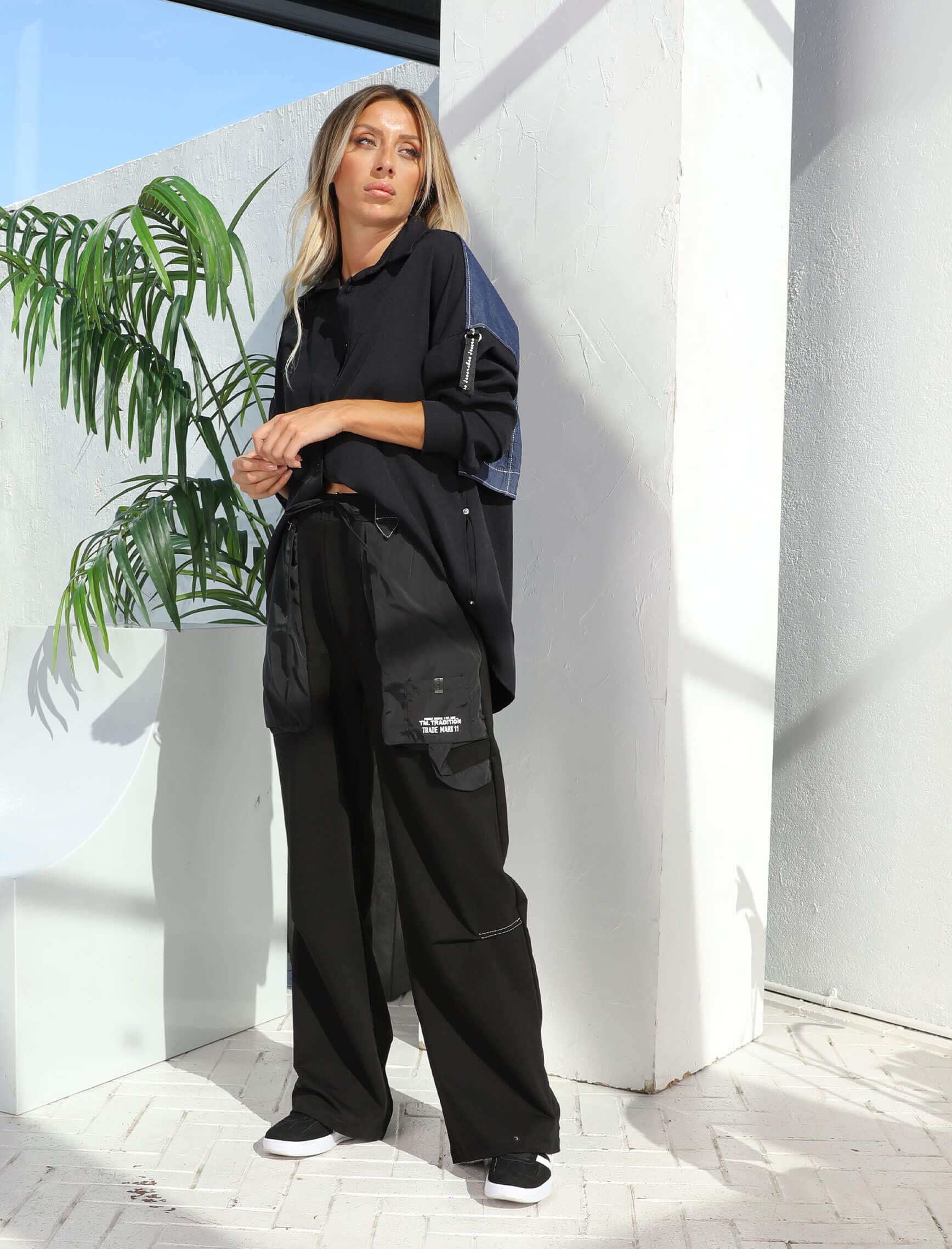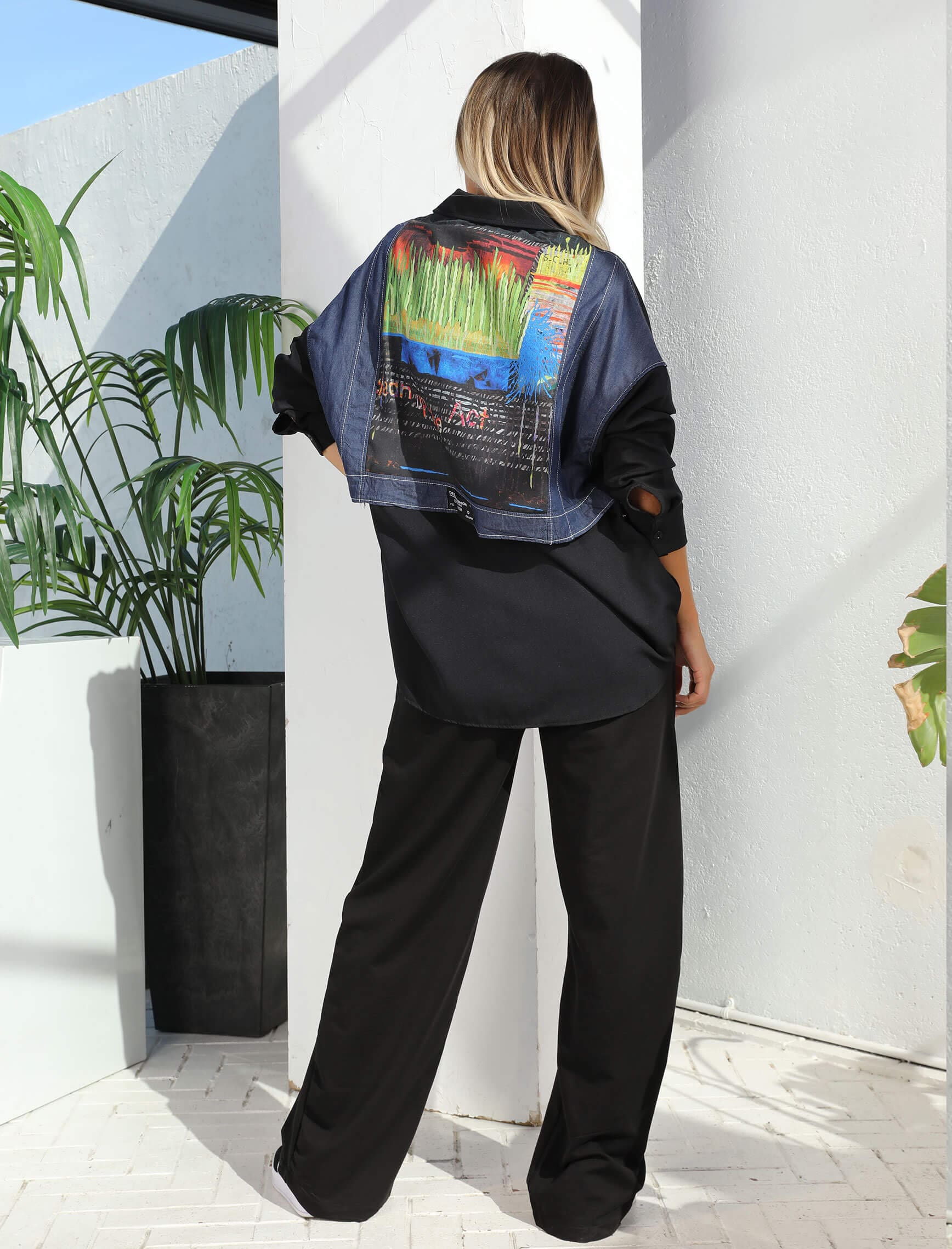 Sırt Jean Desenli Siyah Gömlek
