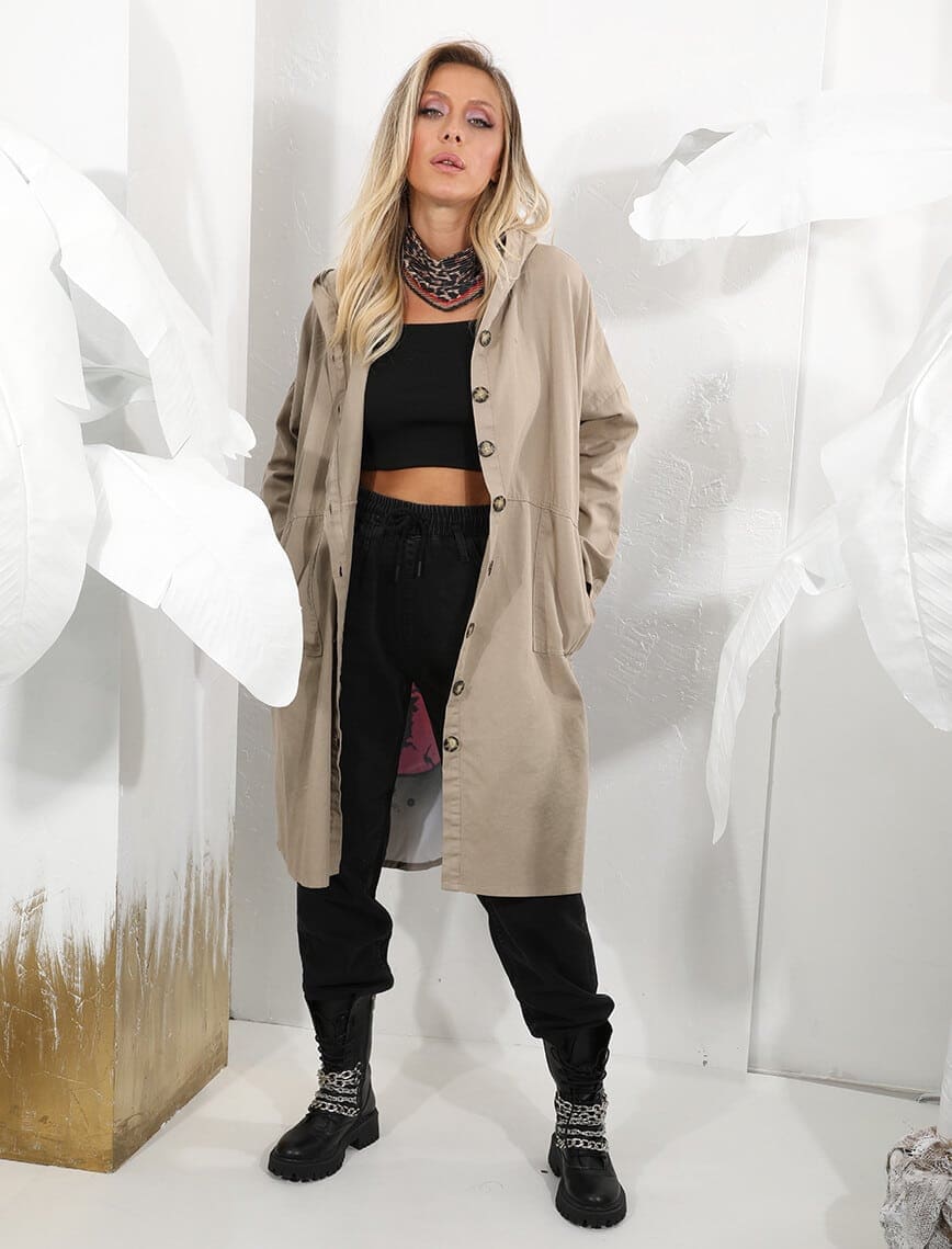 Sırt Resim Vizon Gabardin Trench