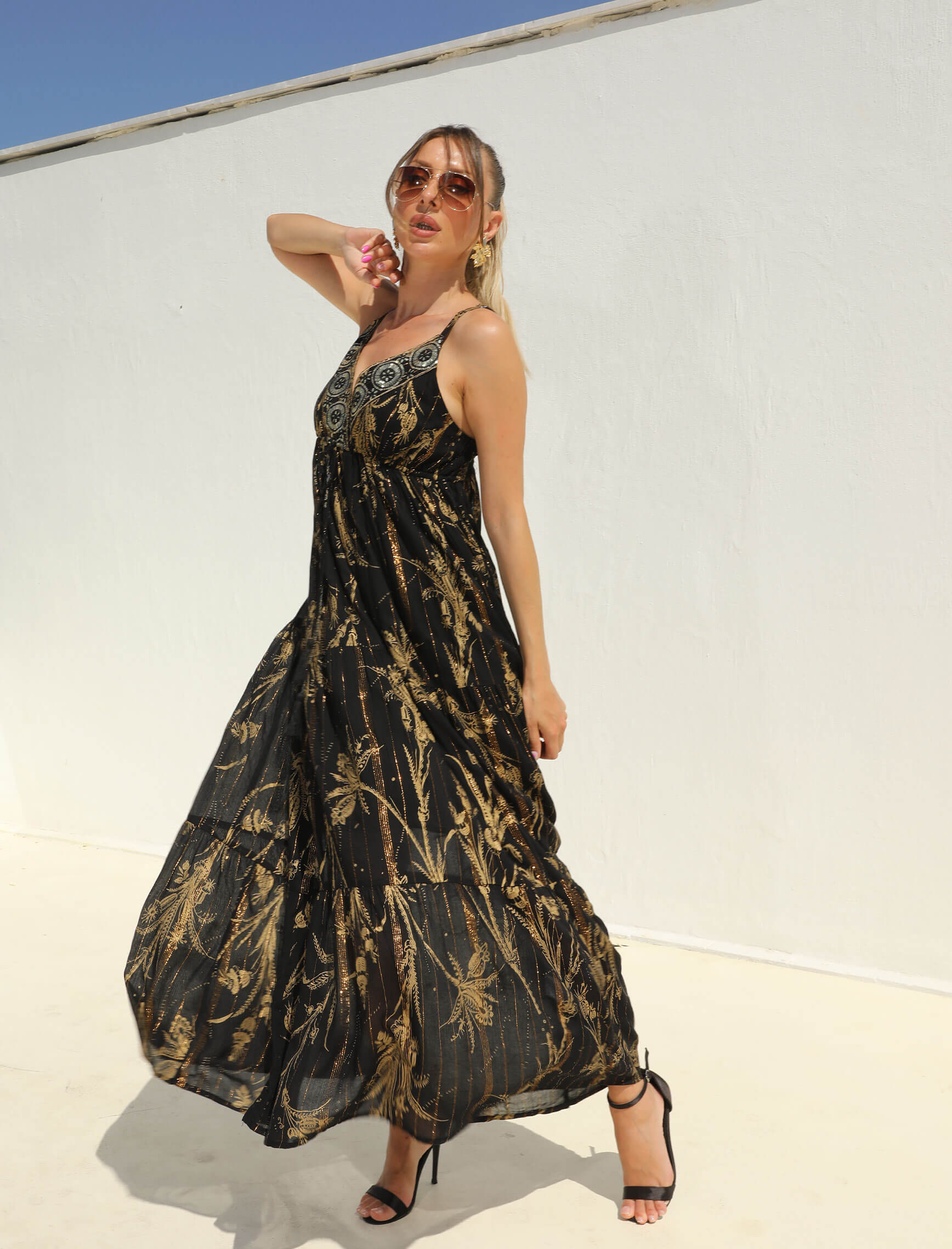 Siyah Bakır Sim İşleme Elbise