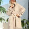 Siyah Belden Bağlama Tüylü Kaşe Kaban