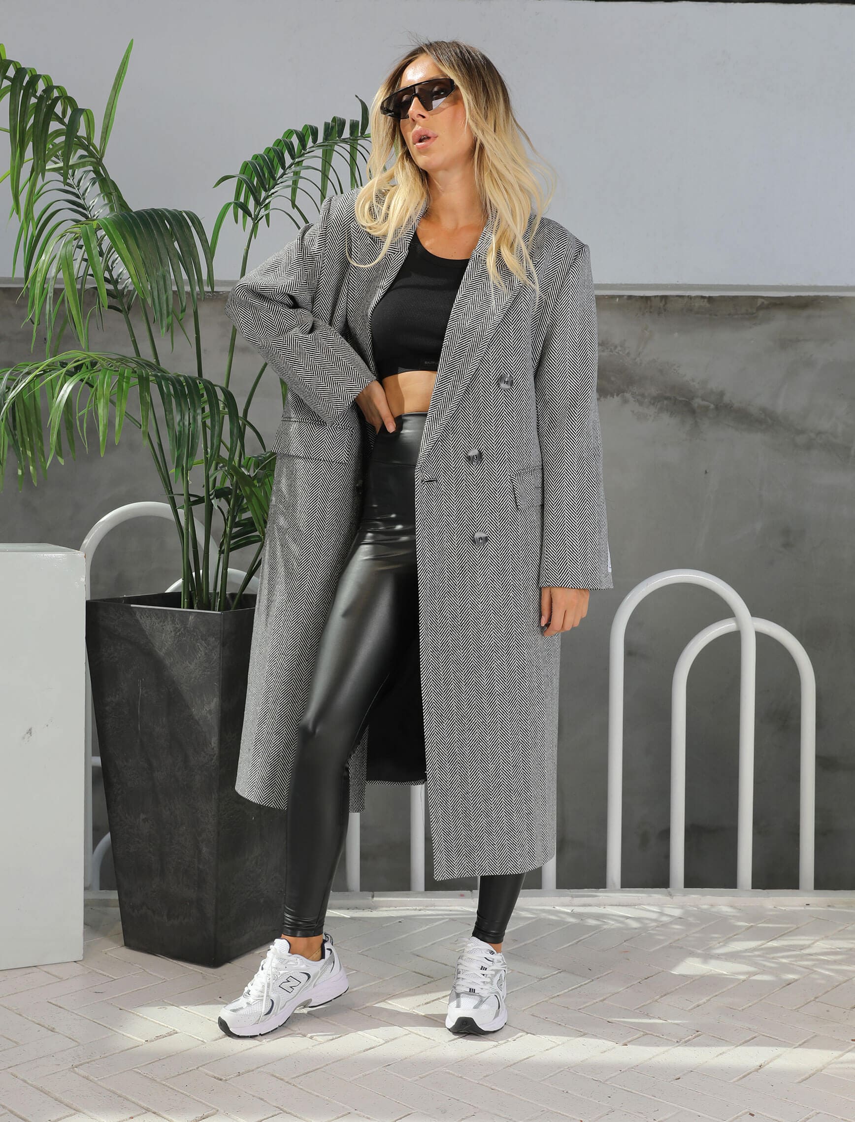 Siyah Beyaz Balıksırtı Kol Arma Kaban