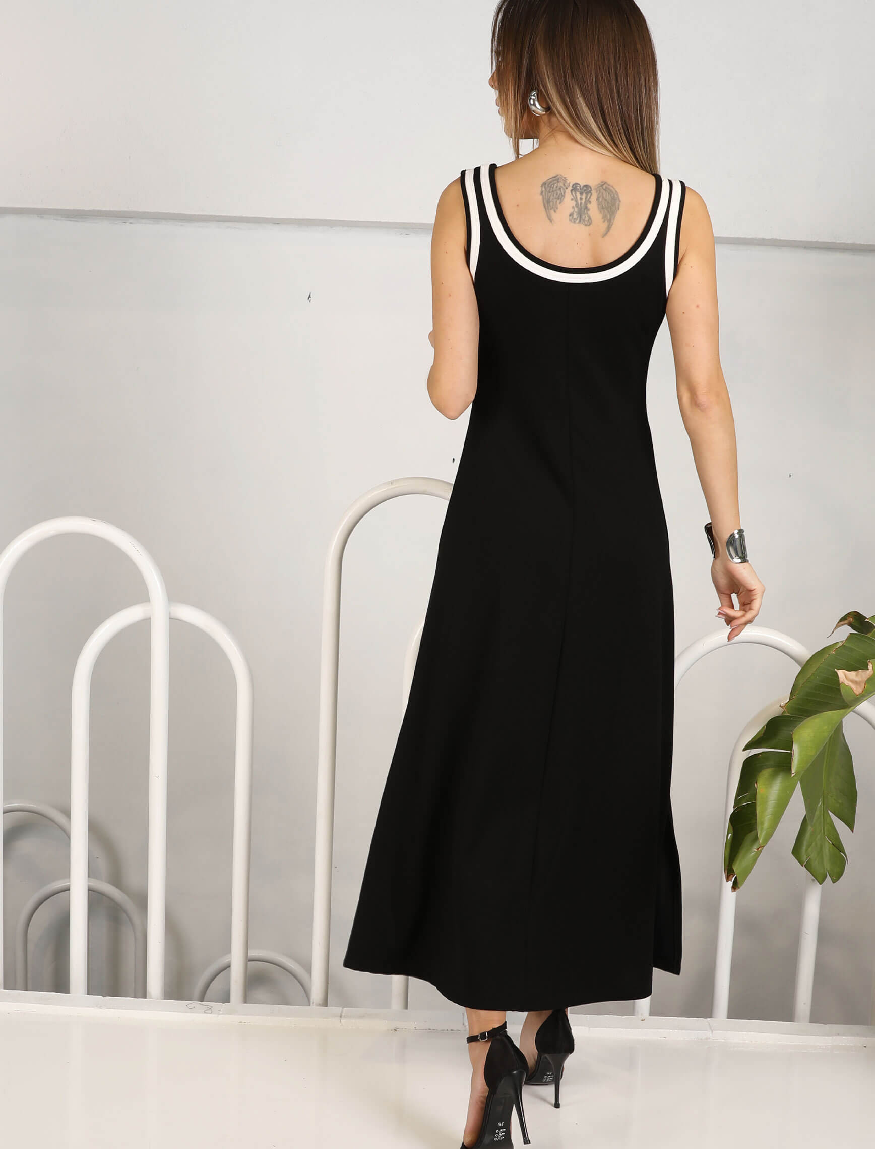 Siyah Beyaz Biye Askılı Elbise