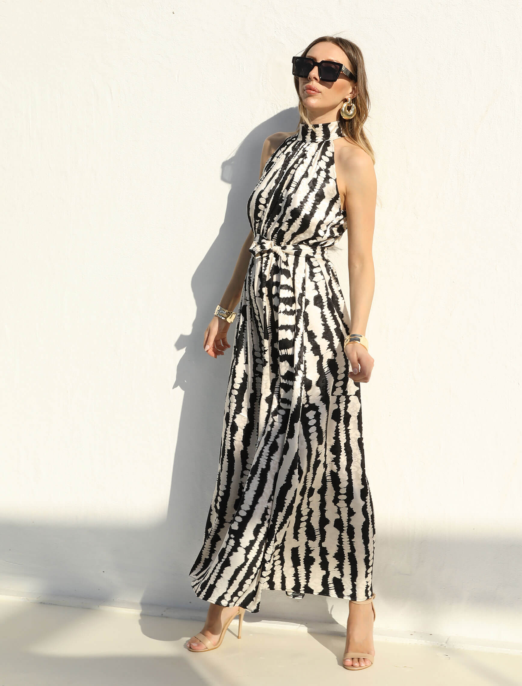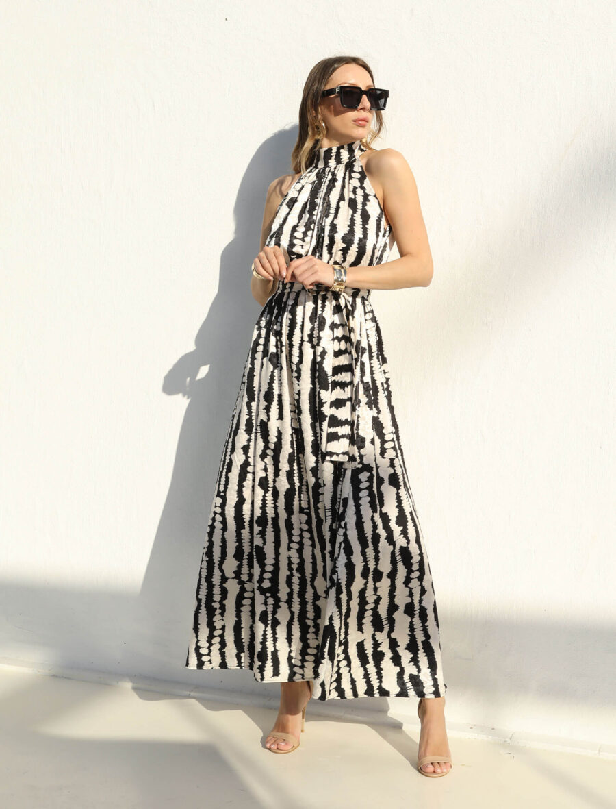 Siyah Beyaz Desen Mita Elbise