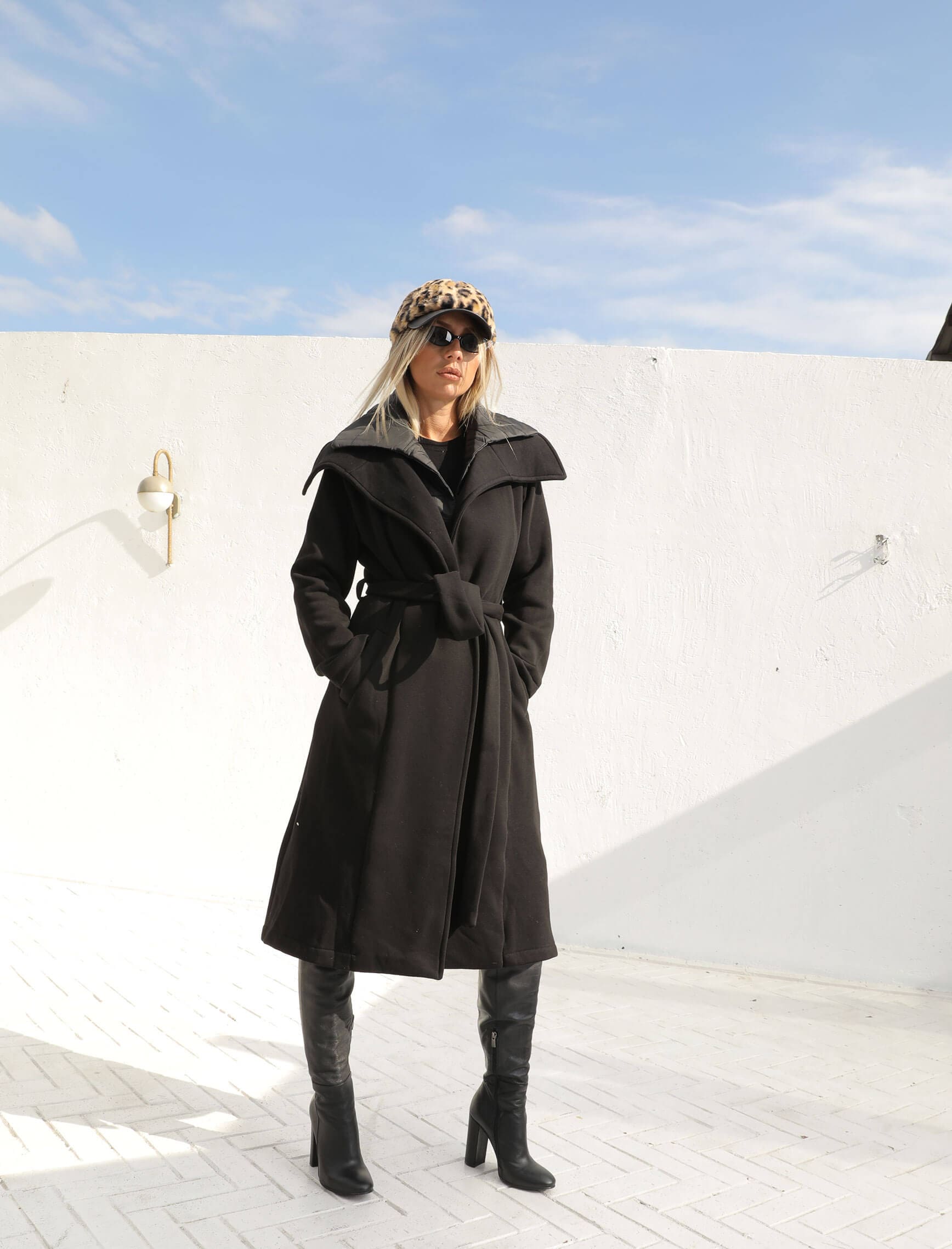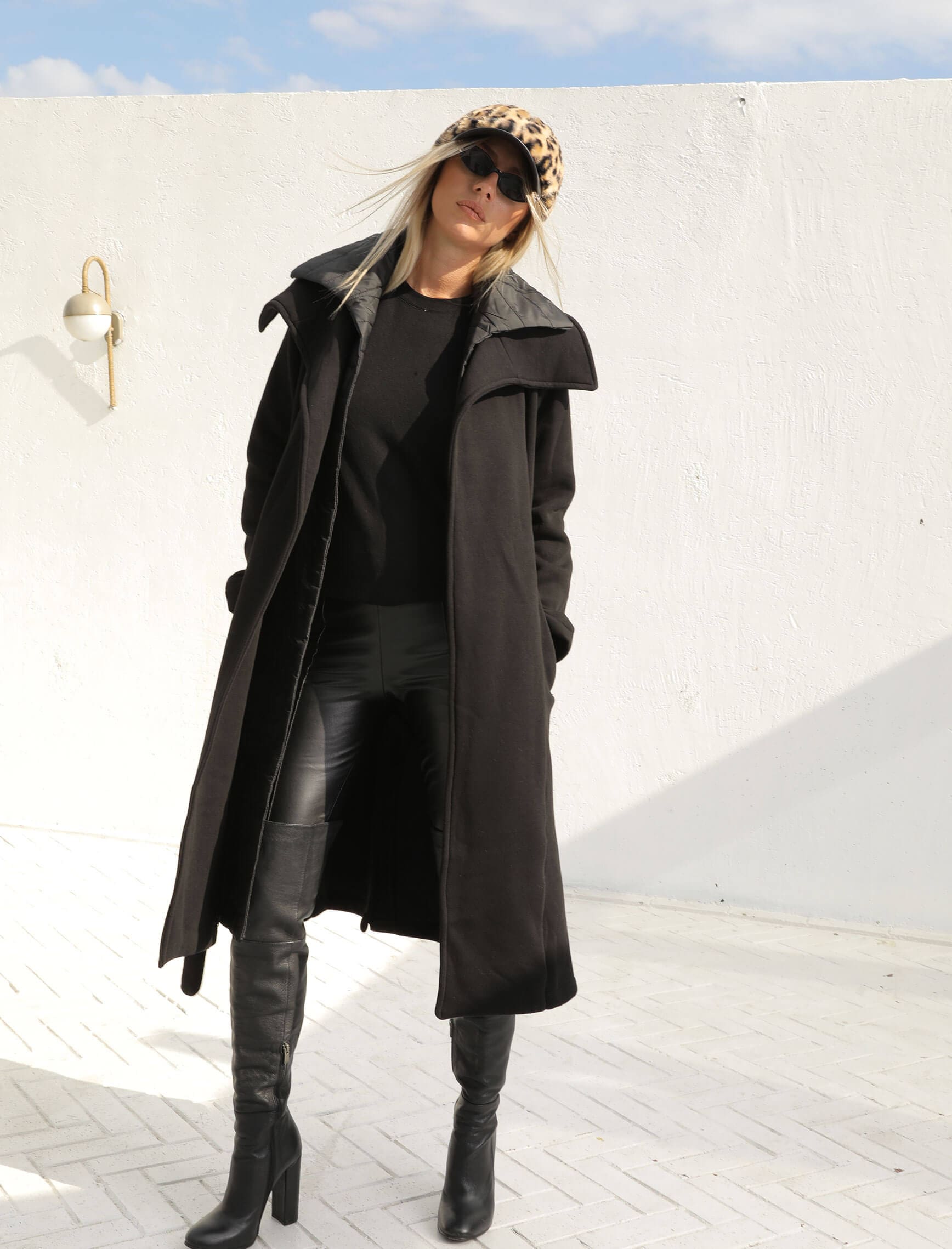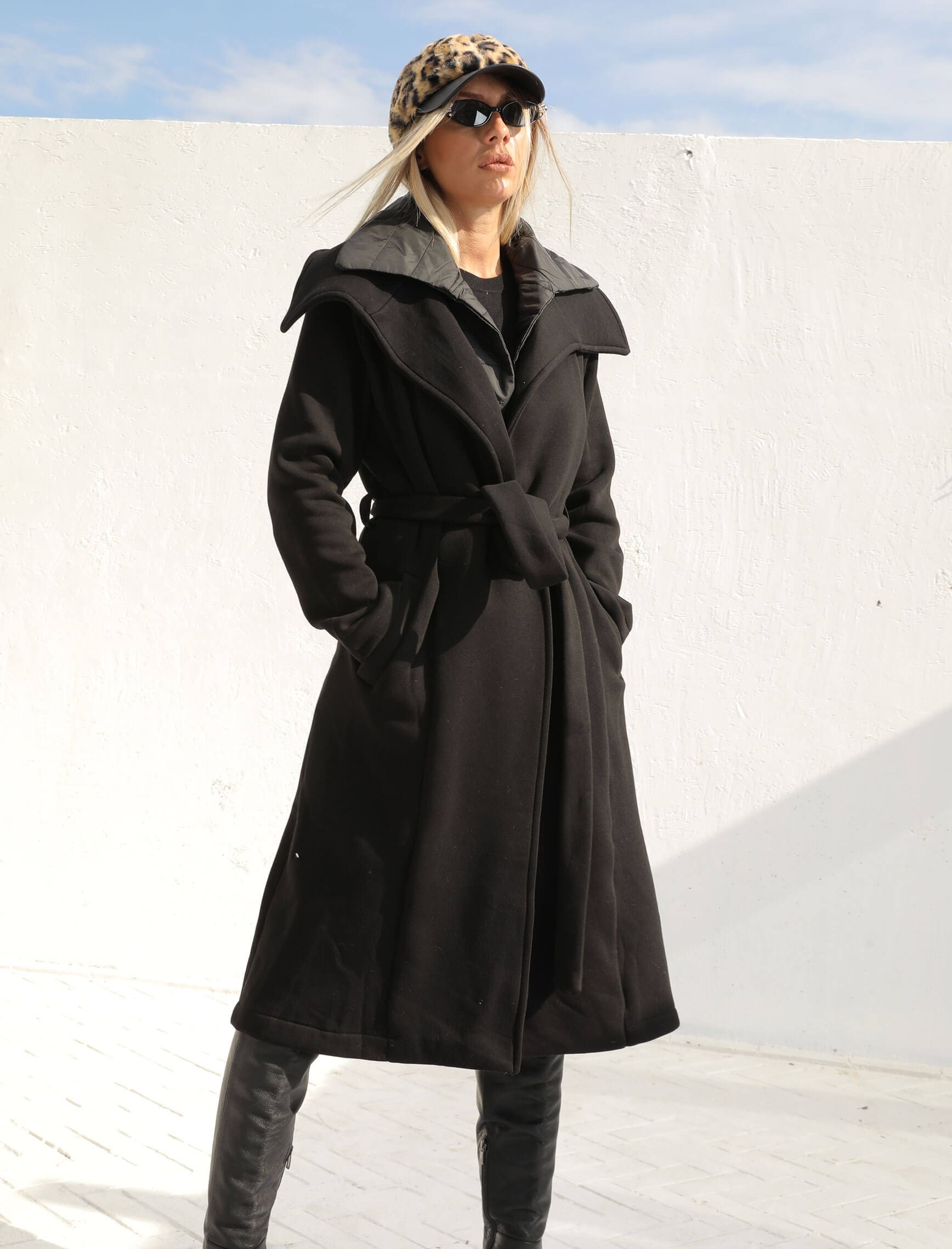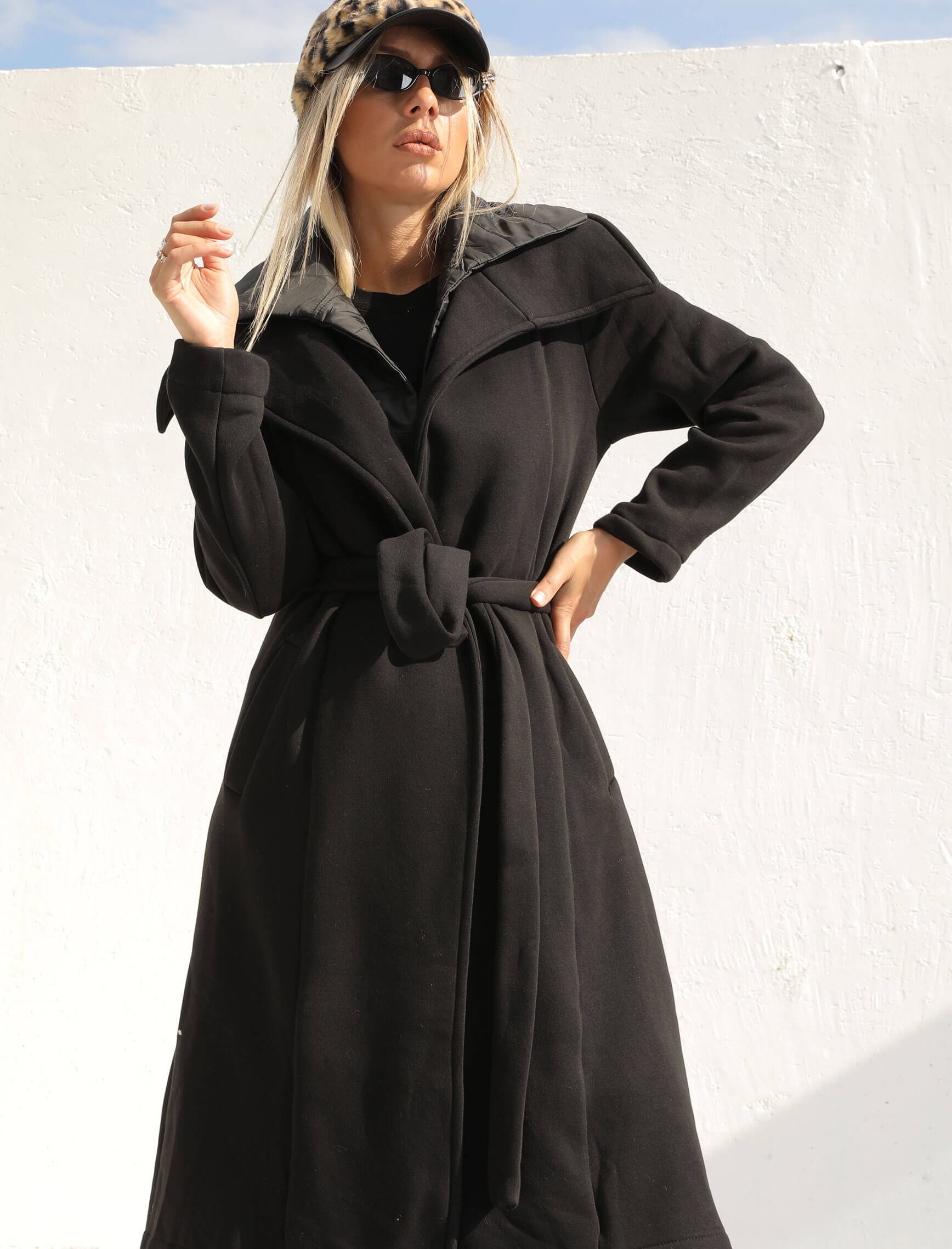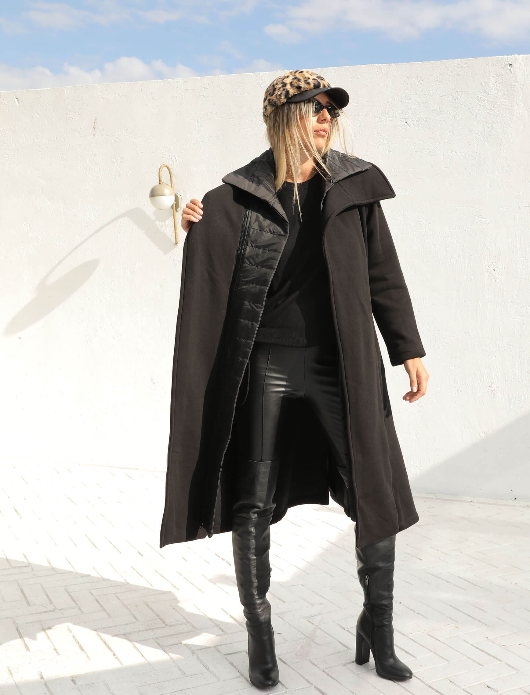 Siyah Puffer Detay Polar Kaban