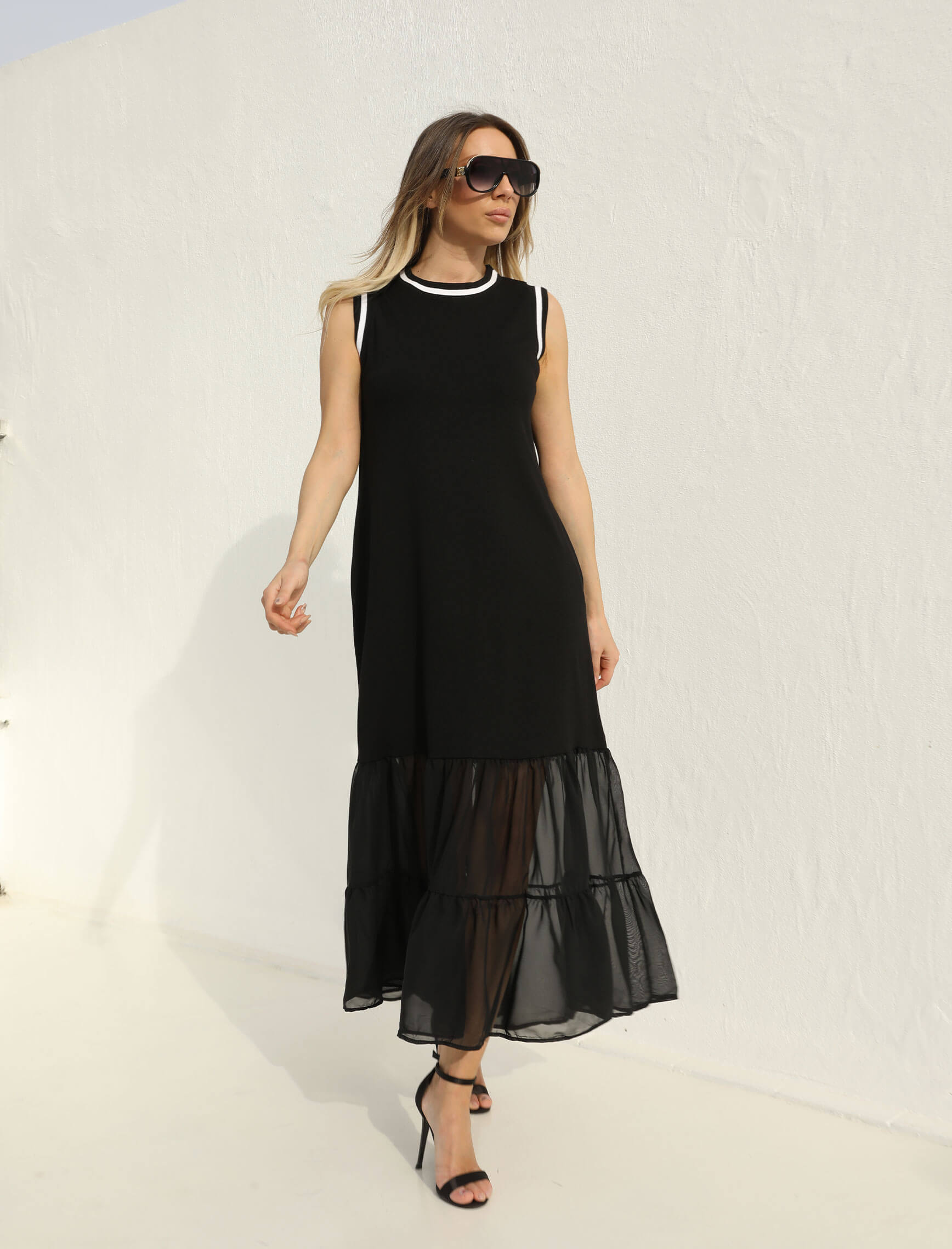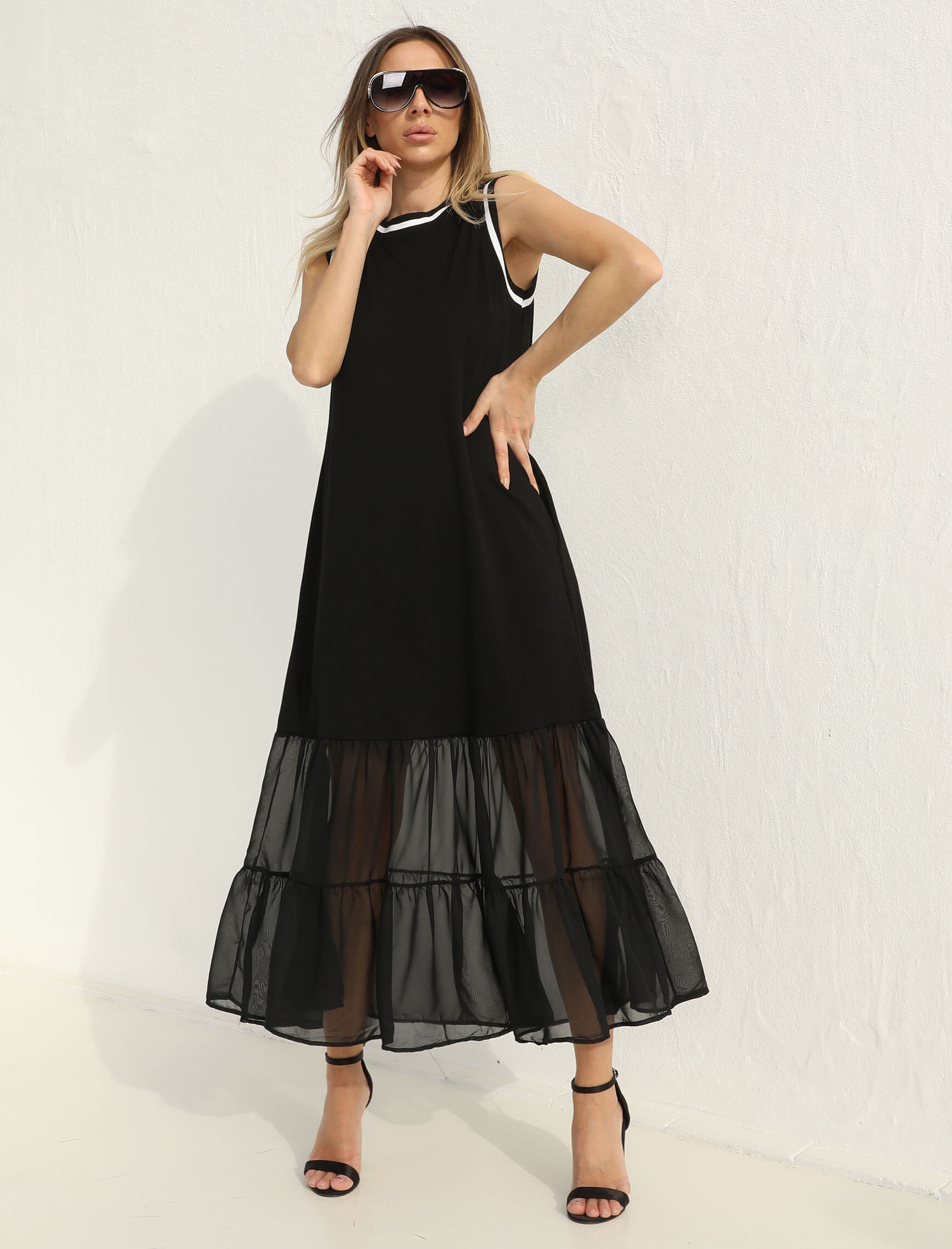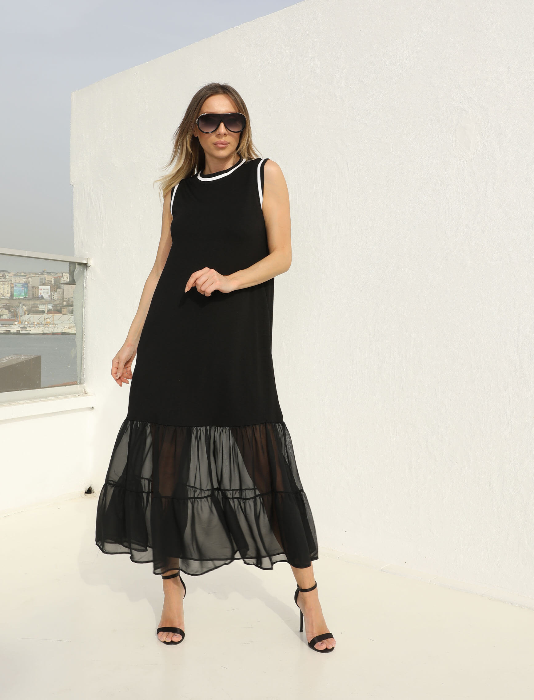 Siyah Eteği Şifon Elbise