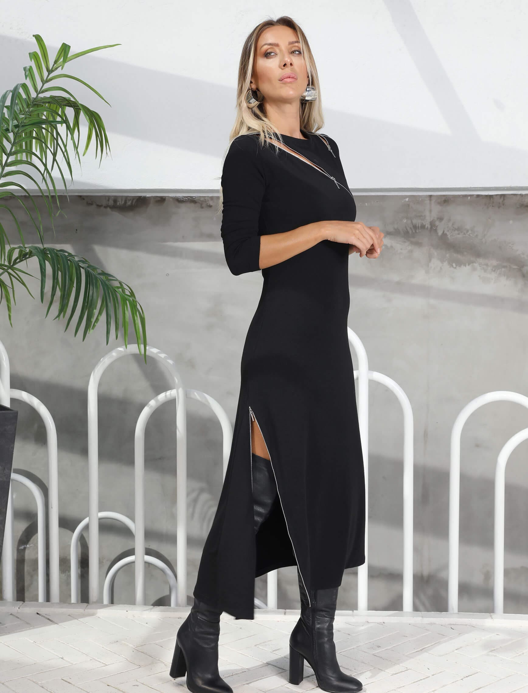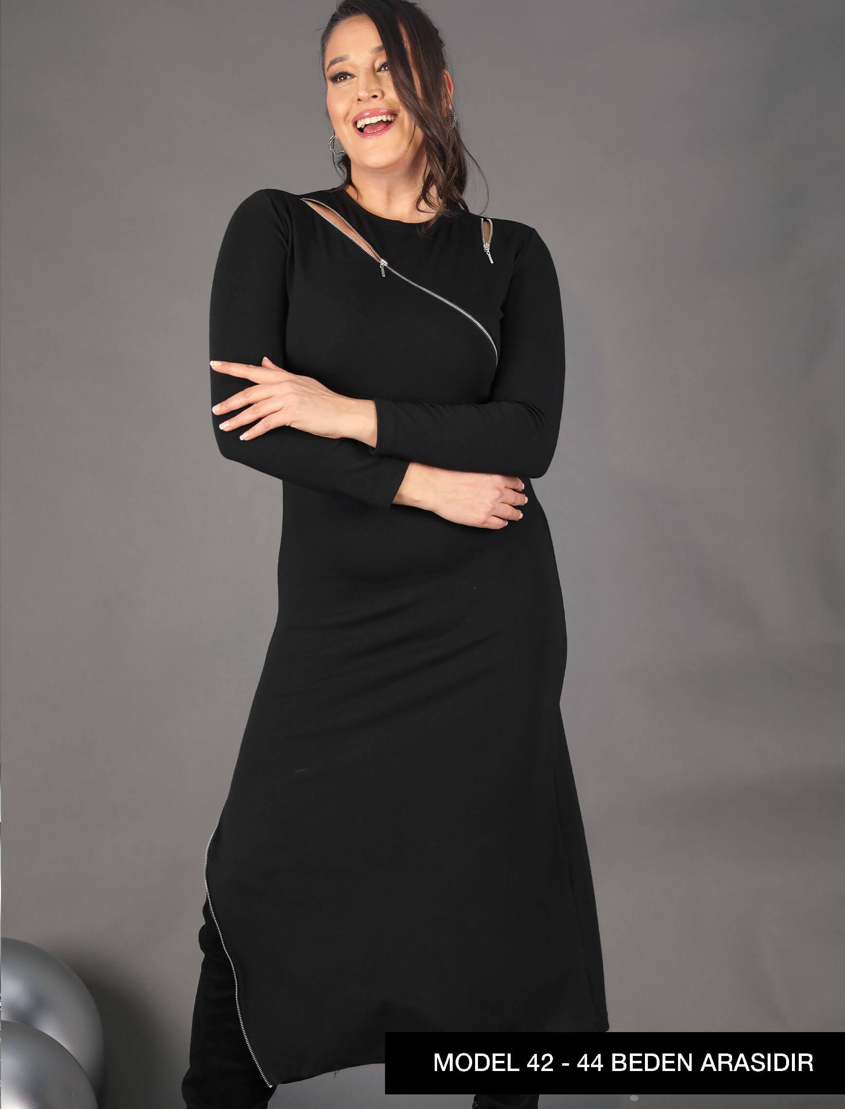 Siyah Fermuar Detay Elbise