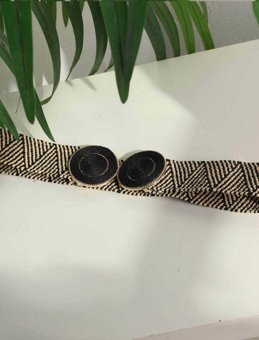 Siyah Hasır Toka Çizgili Kemer