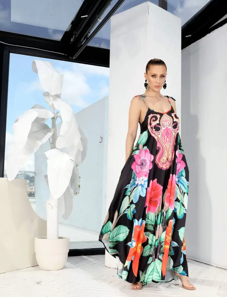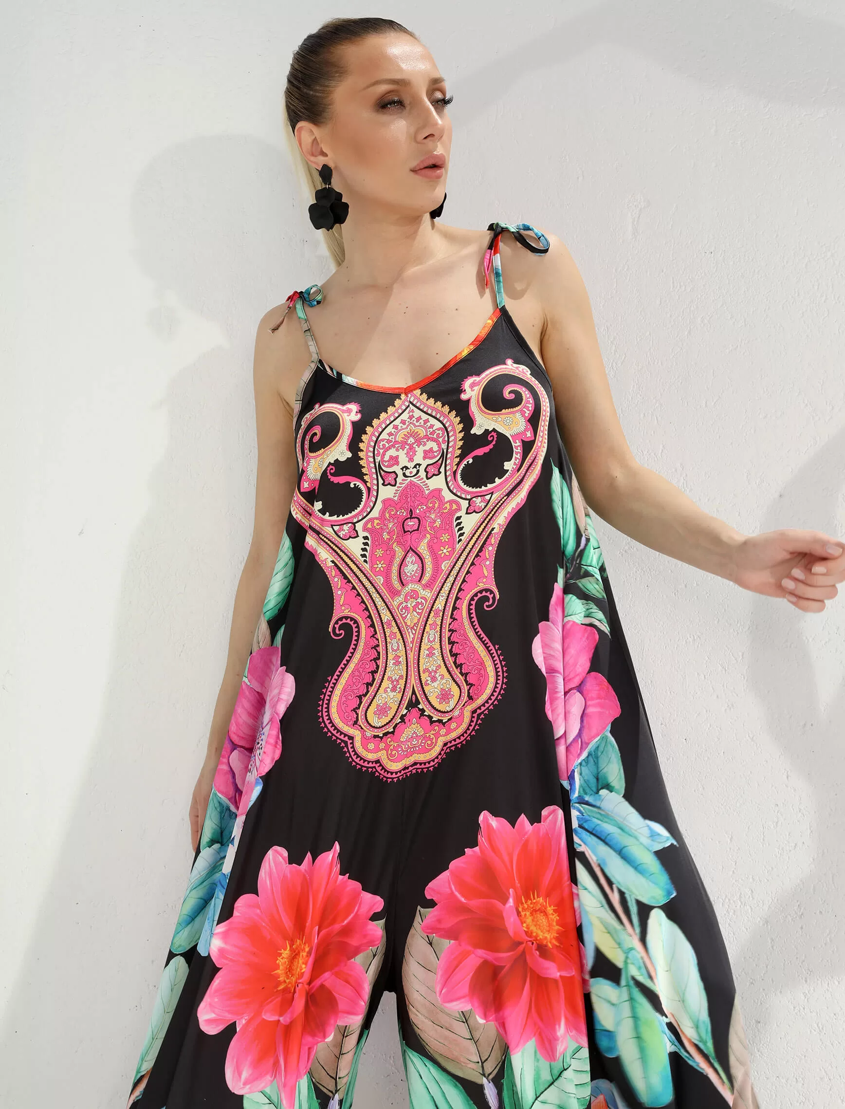 Siyah Japon Çiçeği Desen Catherina Tulum