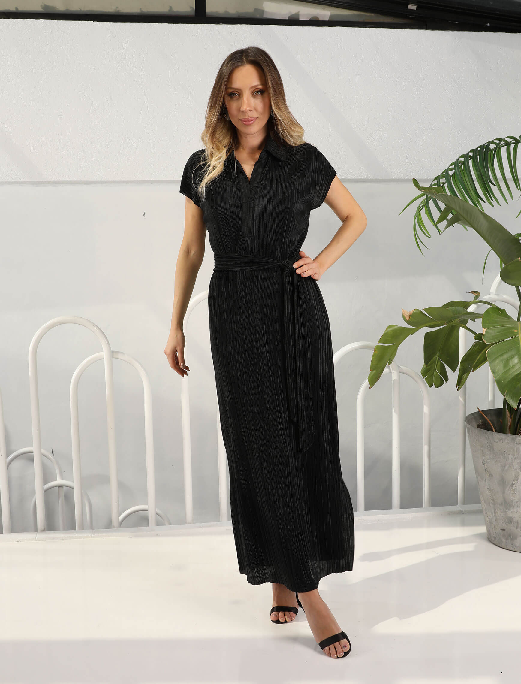 Siyah Polo Yaka Krinkıl Kolsuz Elbise