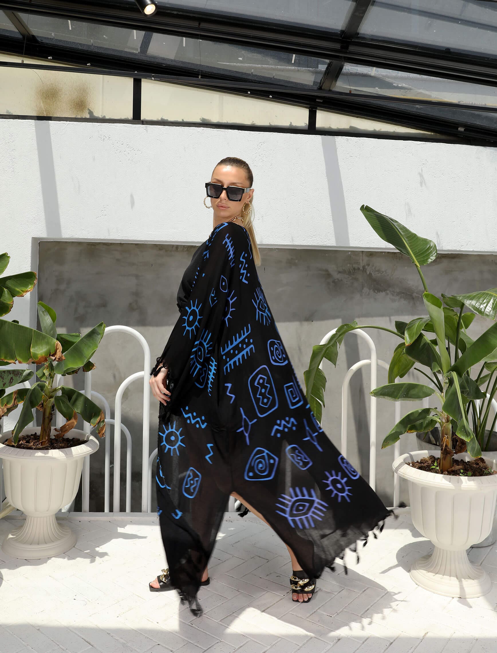 Siyah Saksrengi Ornella Püsküllü Kimono