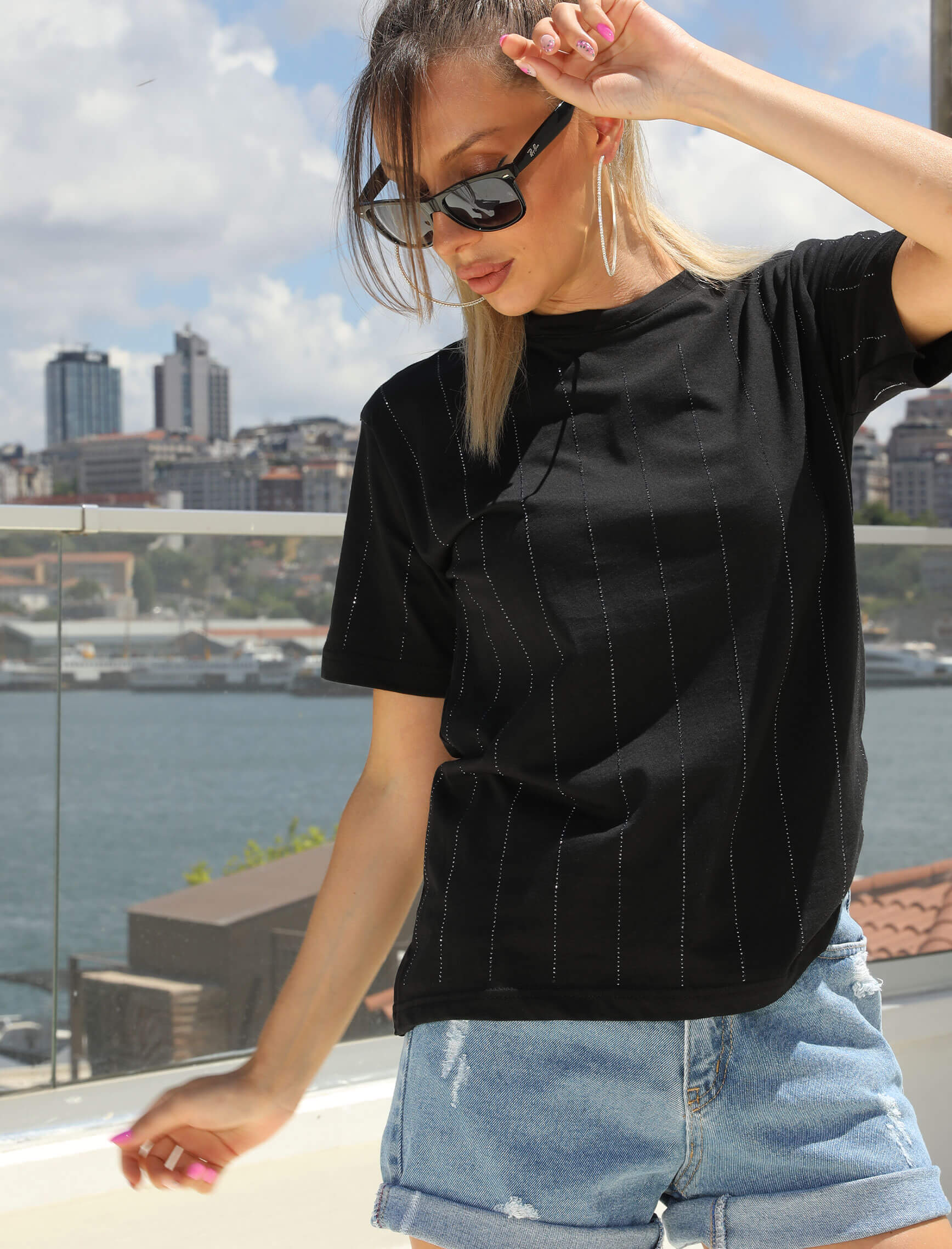 Siyah Sıra Taş Marka Model Tshirt