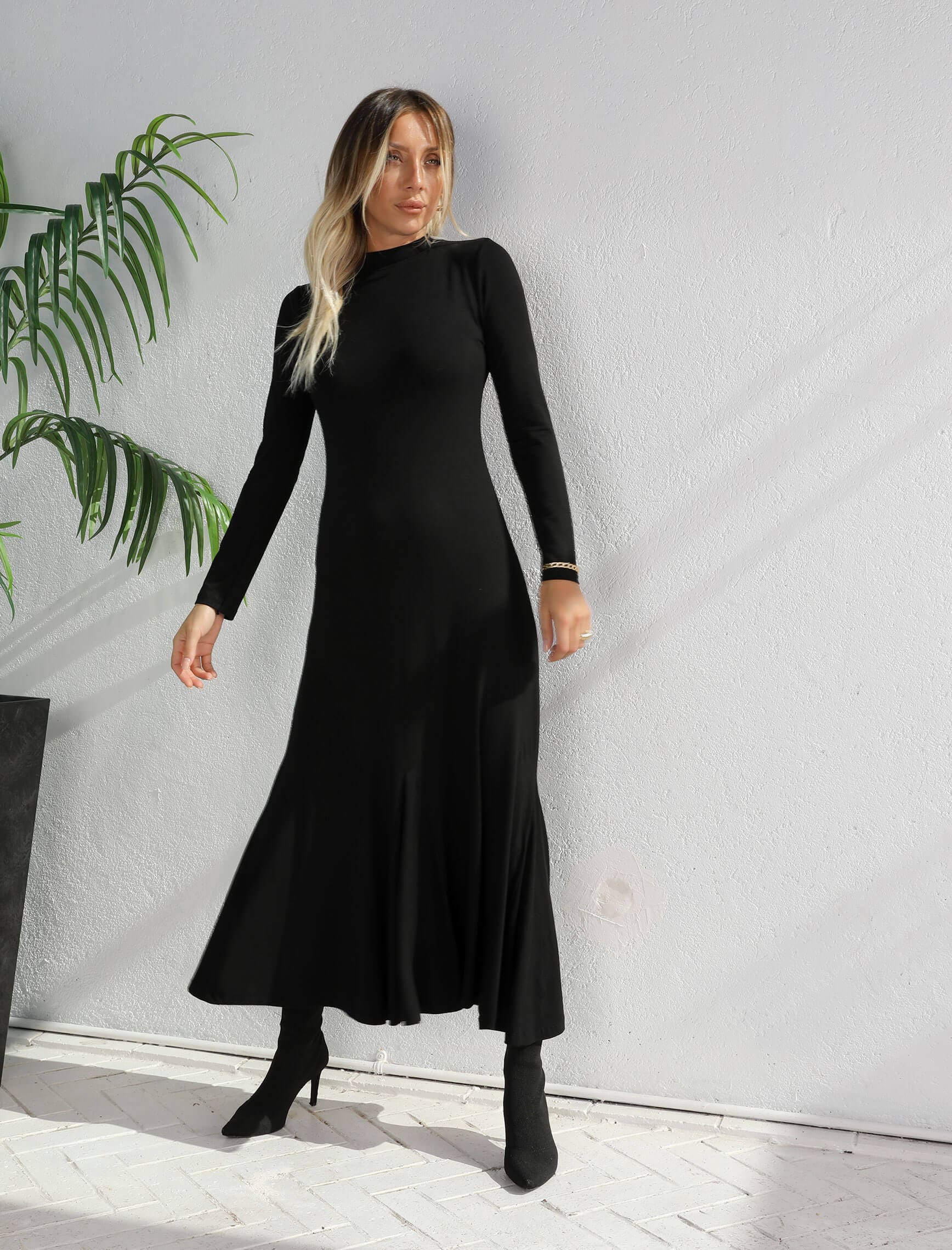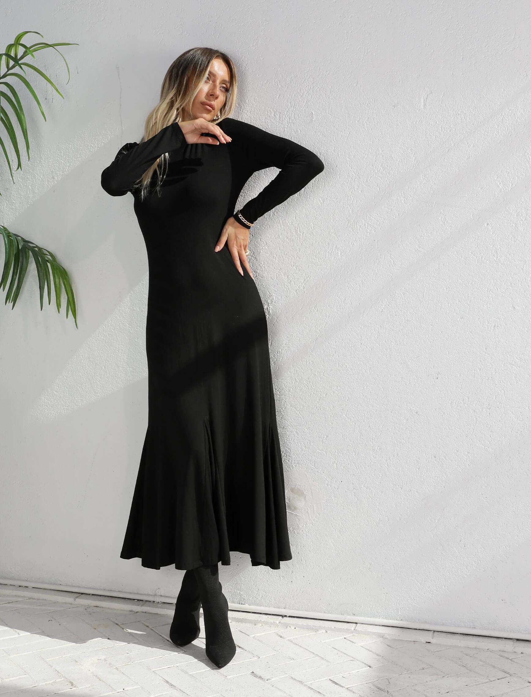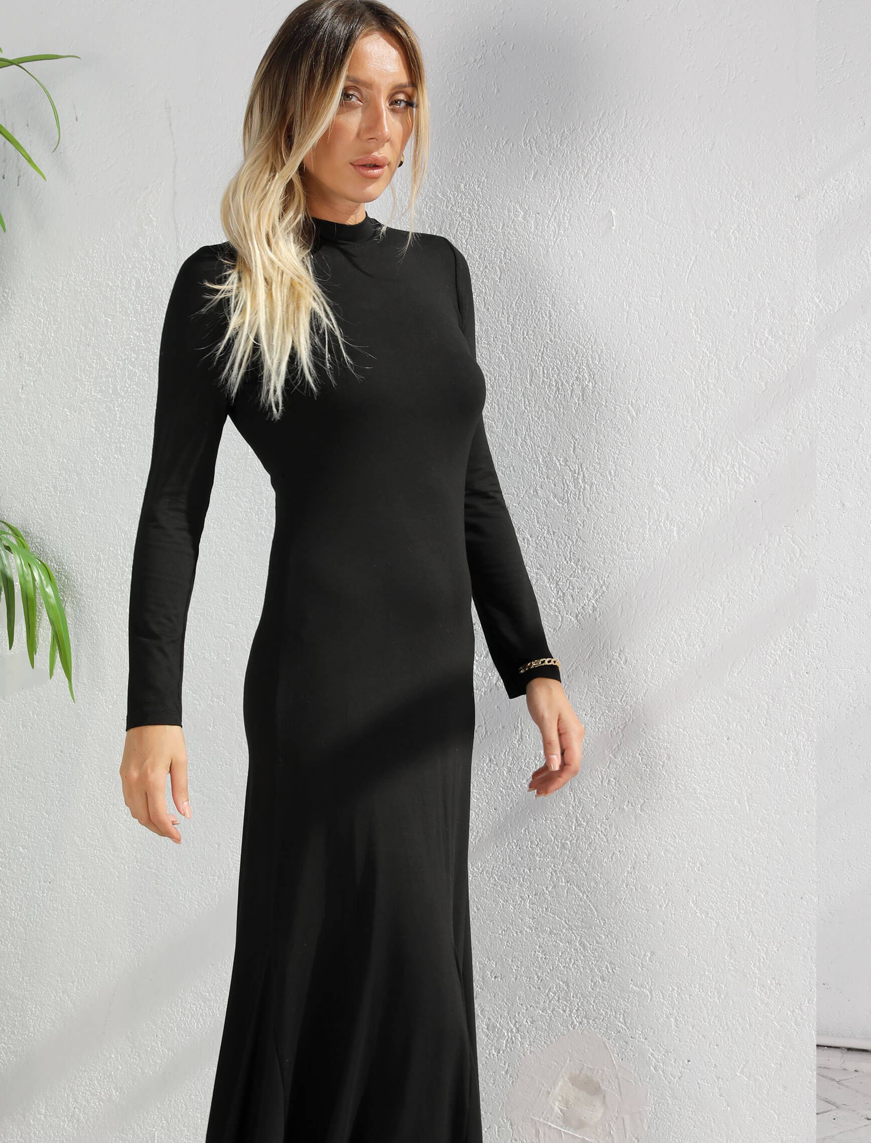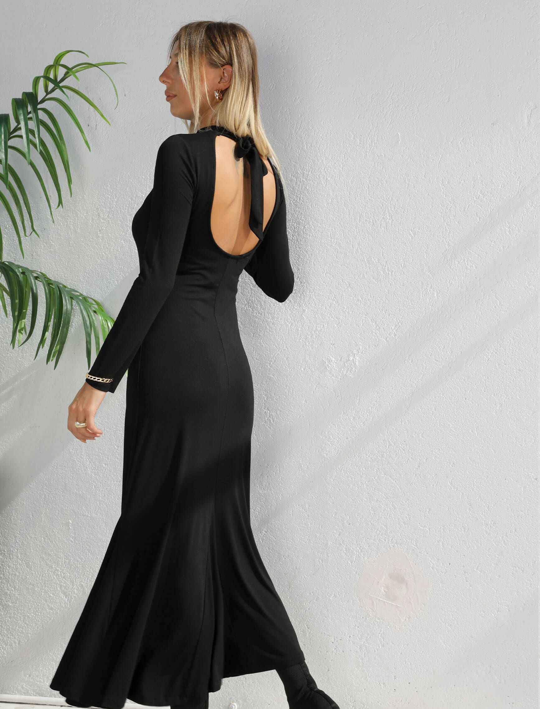 Siyah Sırt Dekolte Boyun Bağlama Elbise