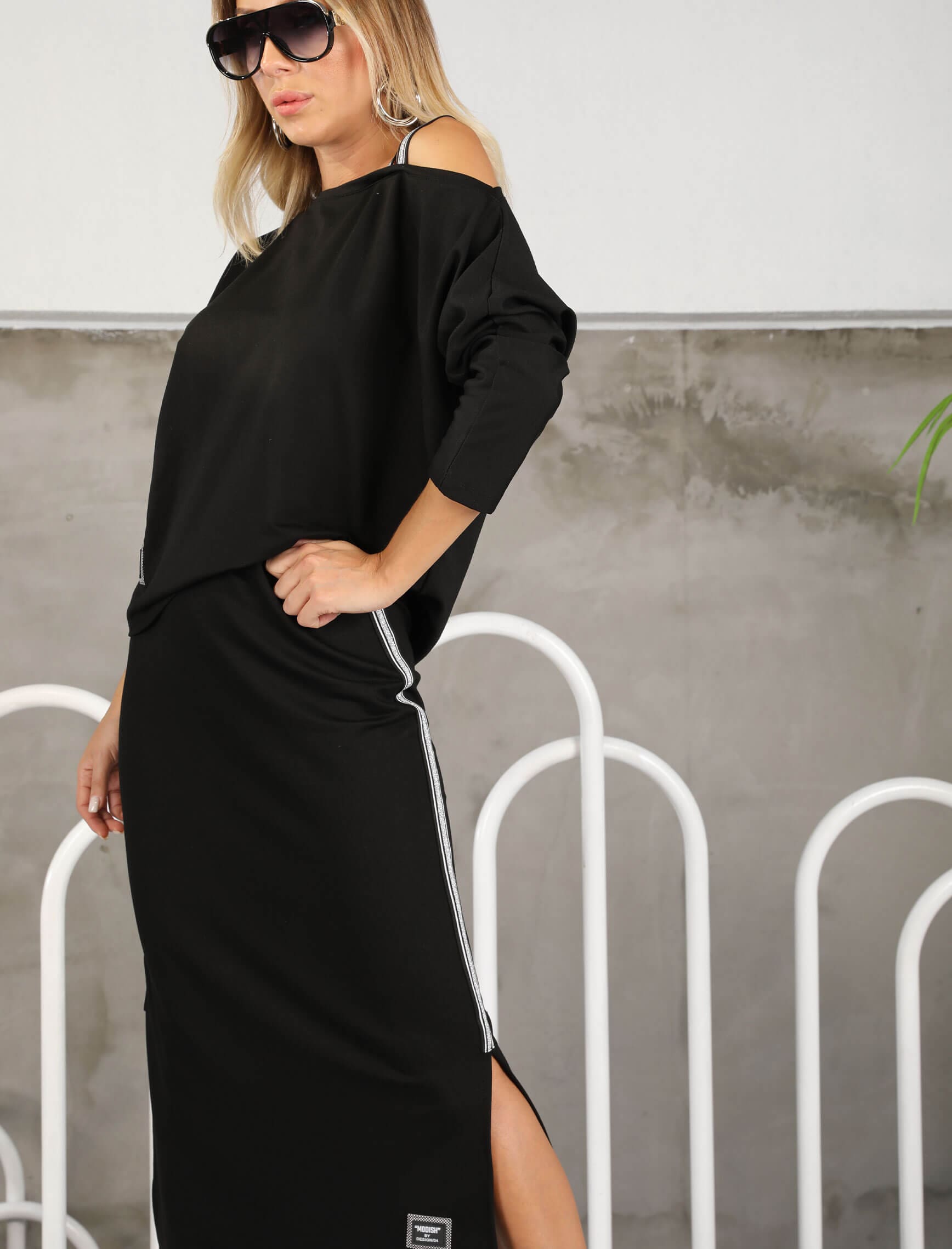 Siyah Stephanie Gümüş Ribana Etekli Takım