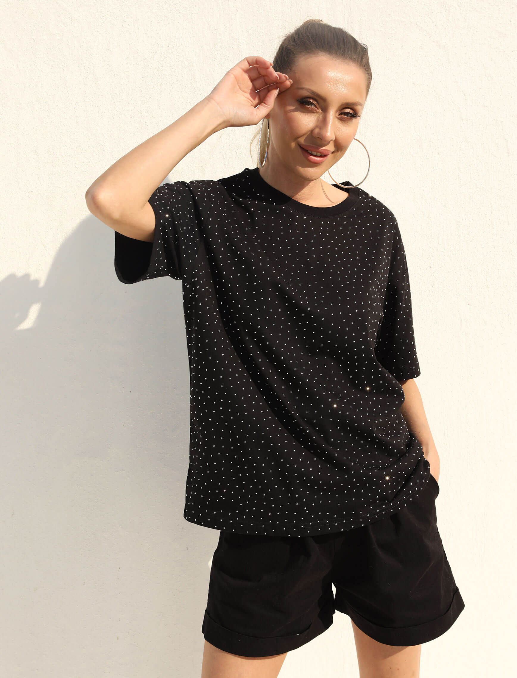 Siyah Taşlı Star Tshirt
