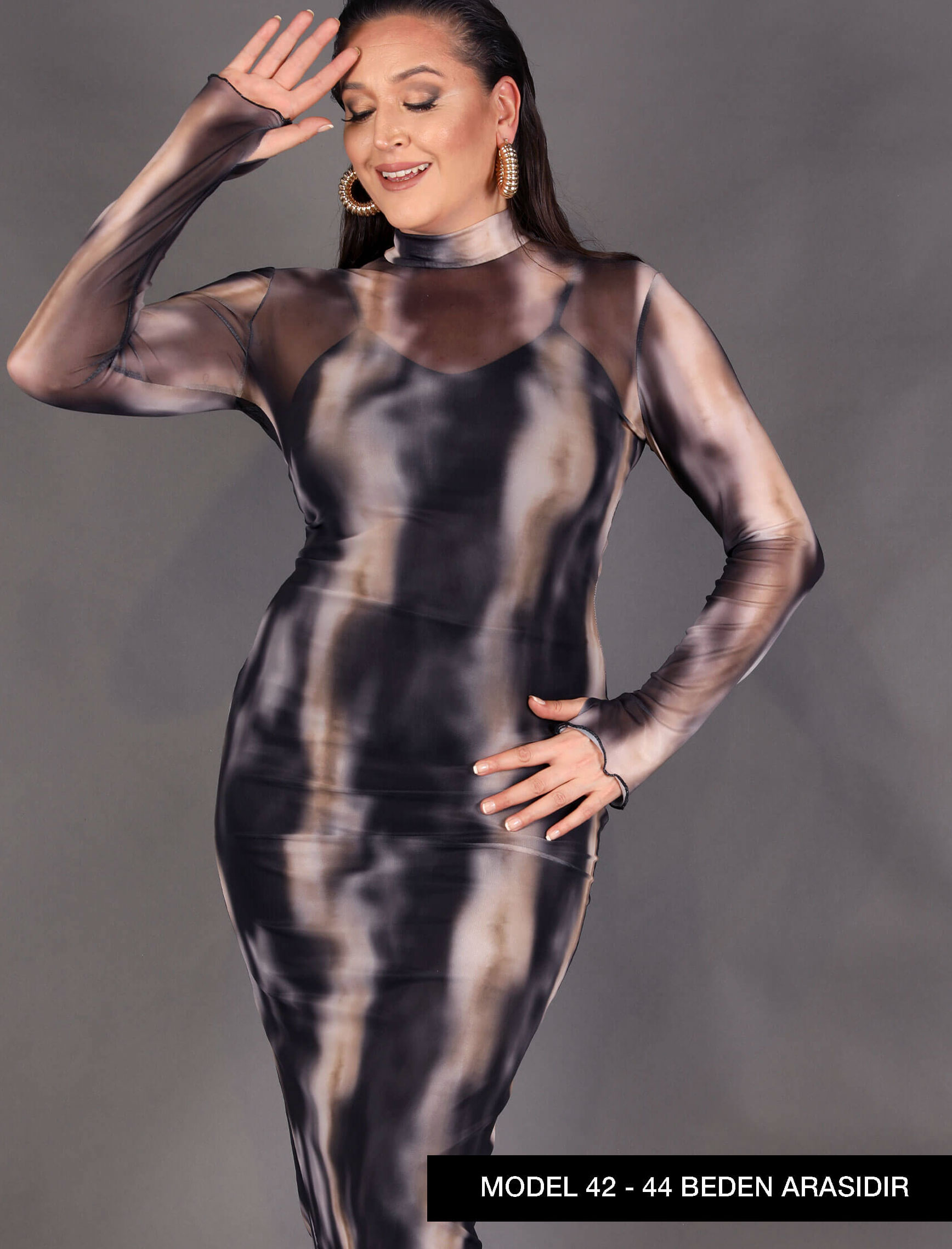Siyah Vizon Degrade Tül Elbise