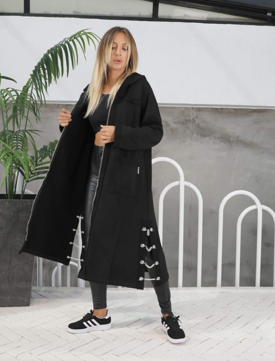 Siyah Yan Zincir Detay Tasarım Sweat Kap