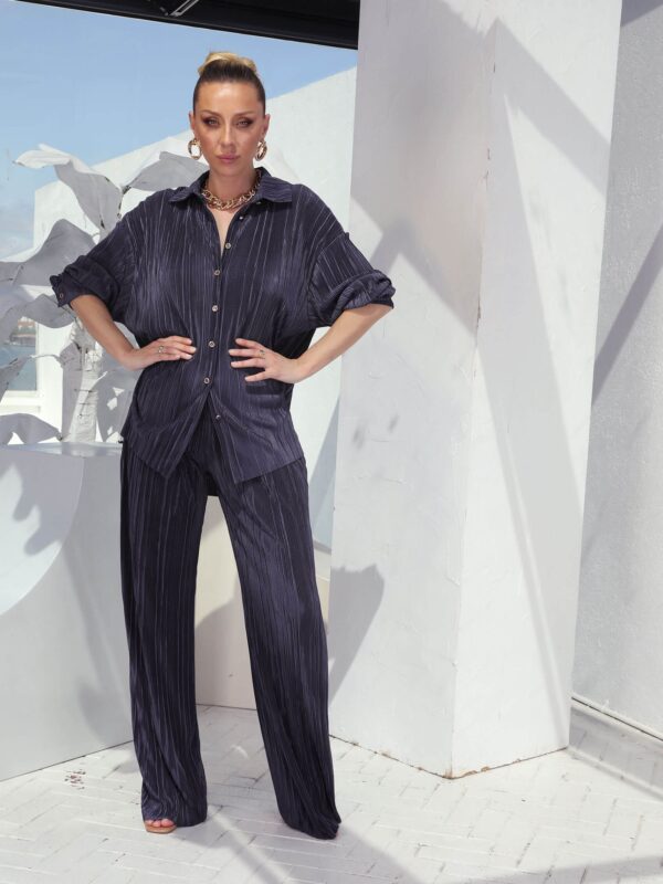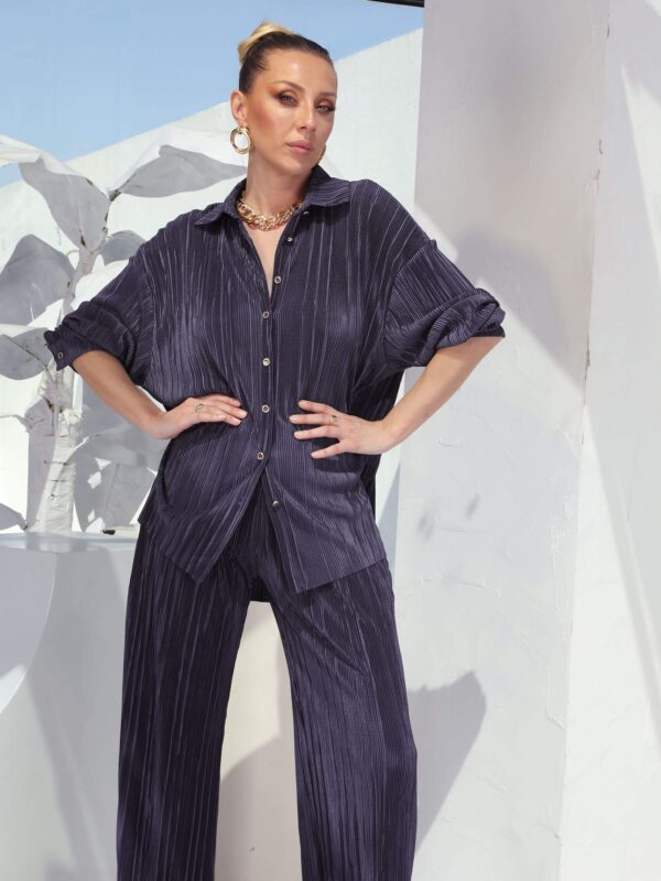 Mavi Mercan Batik Ortanca Pantolon Gömlek Takım