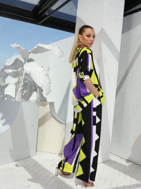 Sarı Mavi Batik Ortanca Pantolon Gömlek Takım