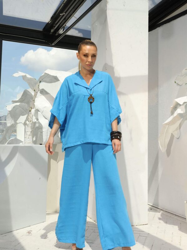Siyah Kolsuz Krinkıl Bluz pantolon Takım