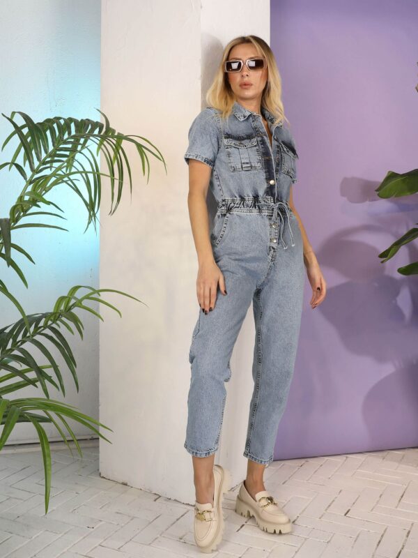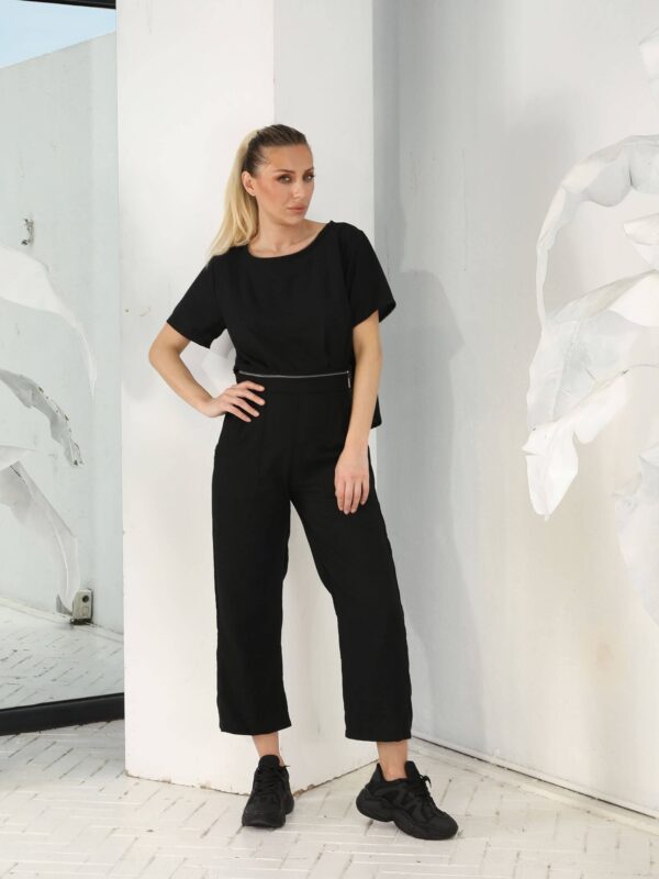 Siyah Beyaz Lale Desen Madonna Yaka Tulum
