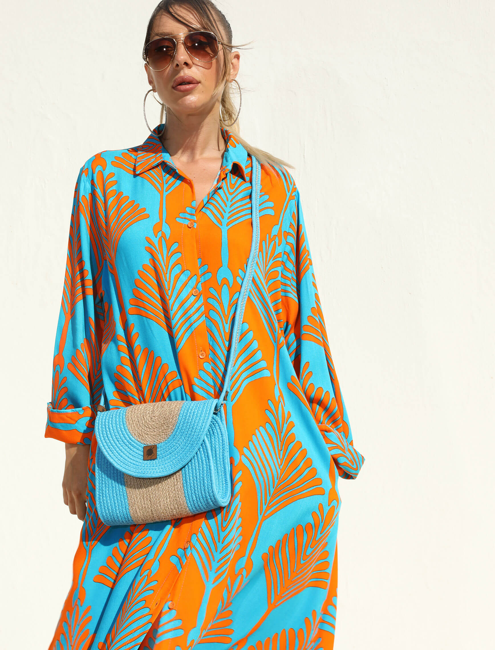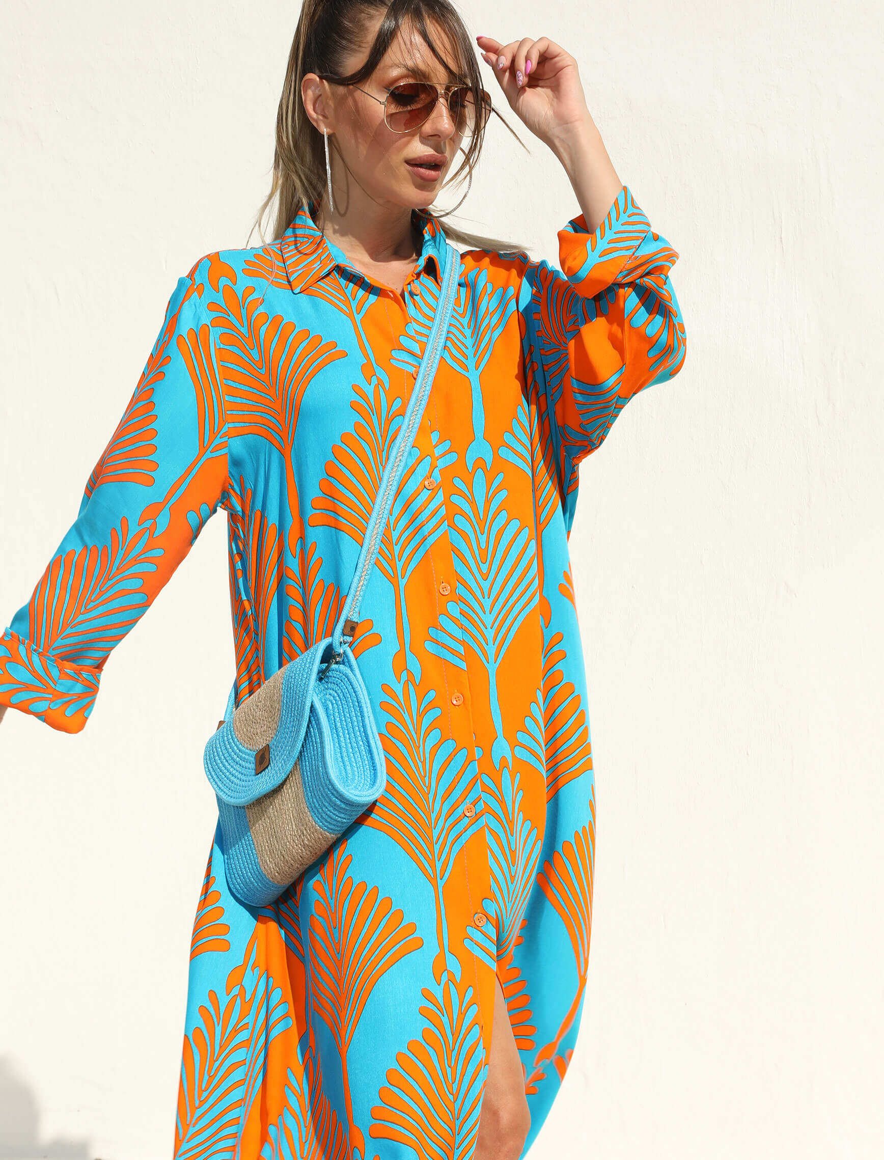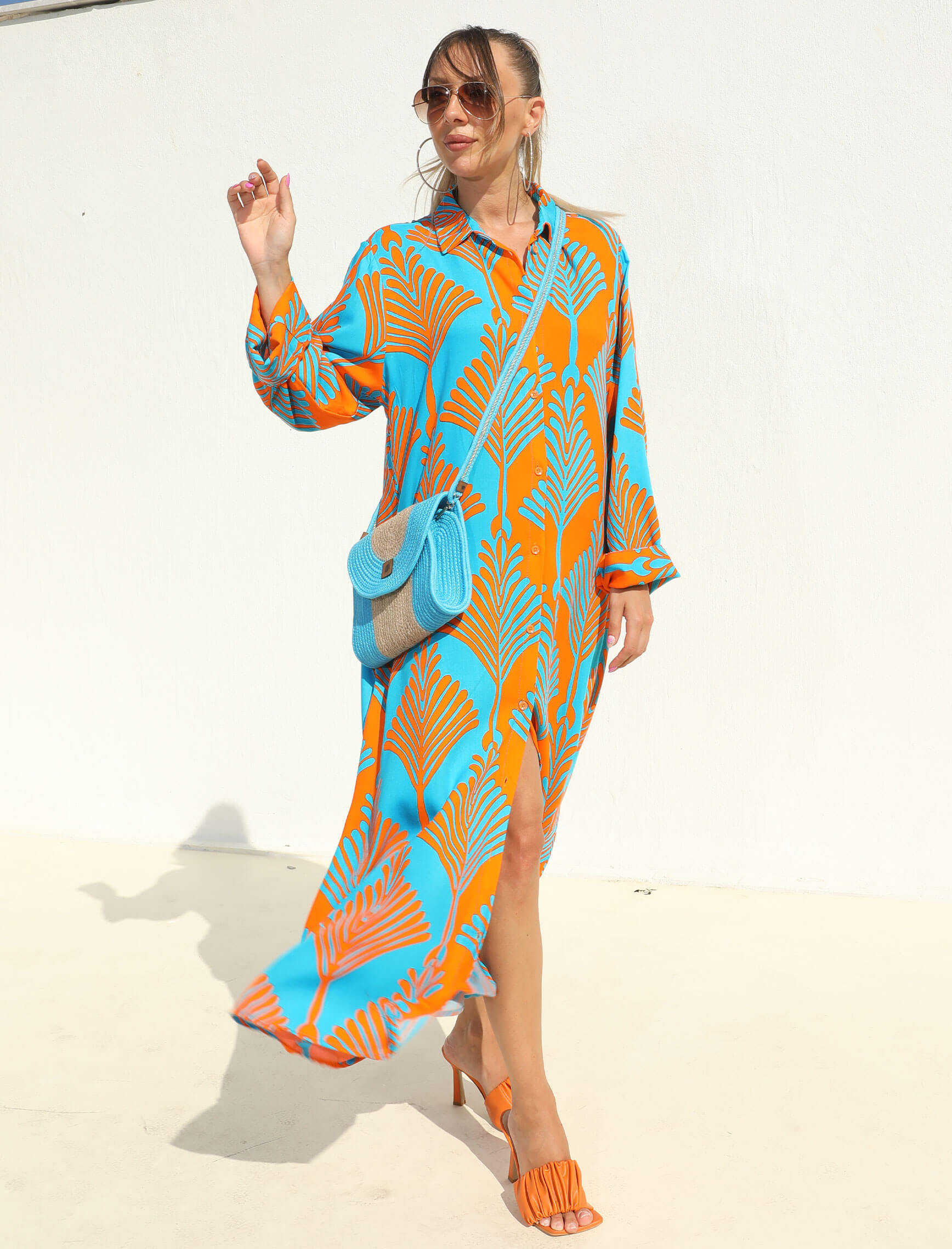Turuncu Turkuaz Siesta Gömlek Elbise