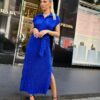 Vizon Polo Yaka Krinkıl Kolsuz Elbise