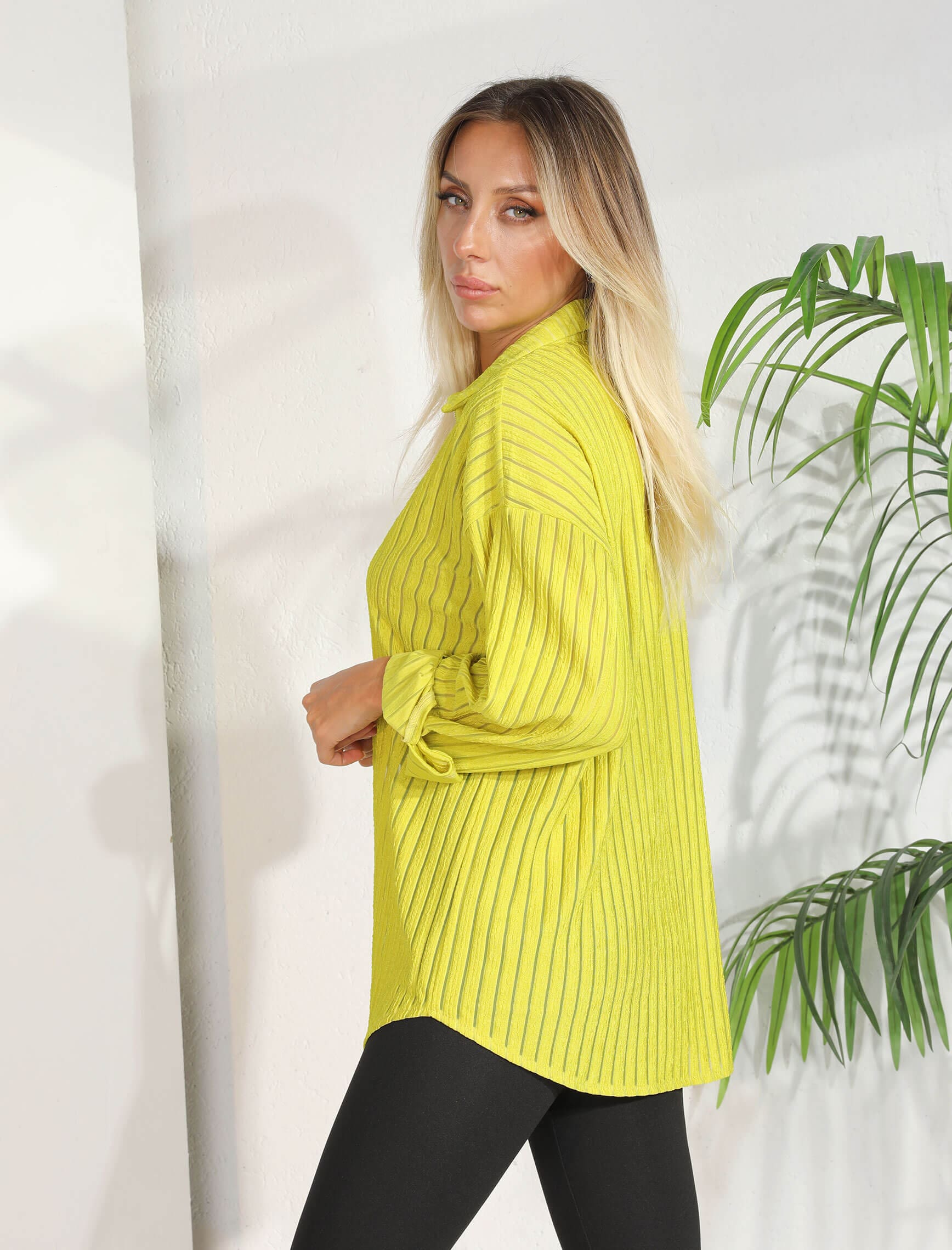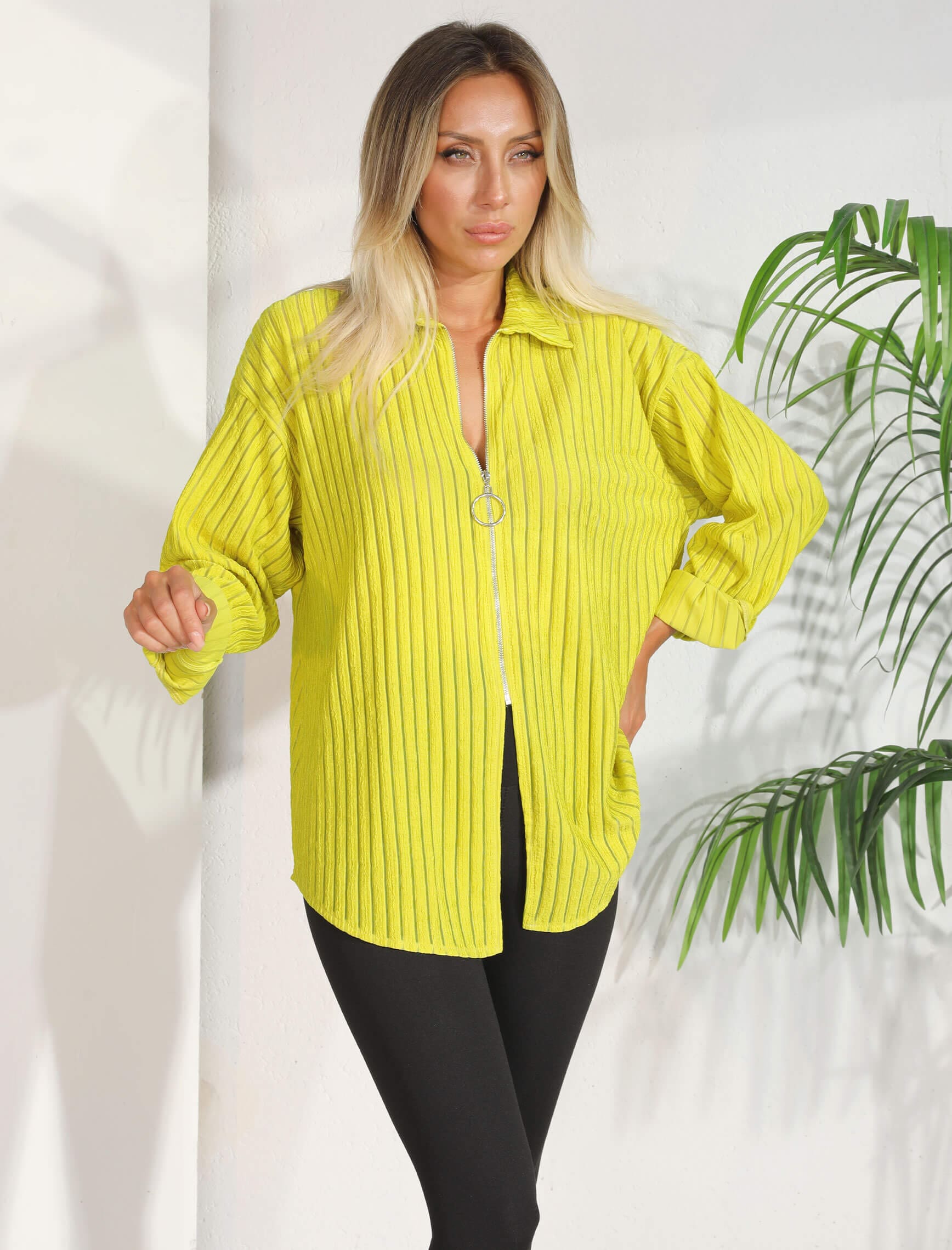 Yağ Yeşili Transparan Şerit Fermuarlı Gömlek