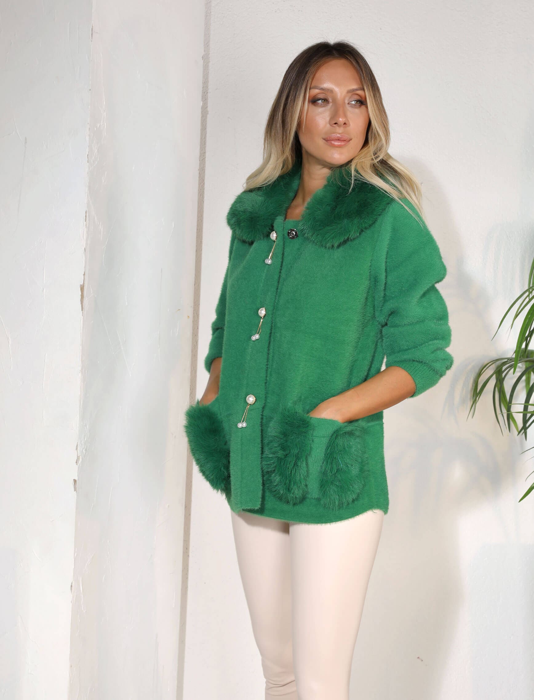 Yeşil İnci Düğme Angora Kaban