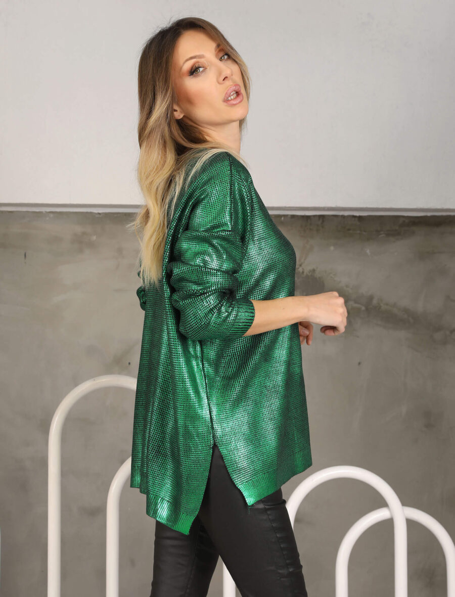 Yeşil Lak V Yaka Triko