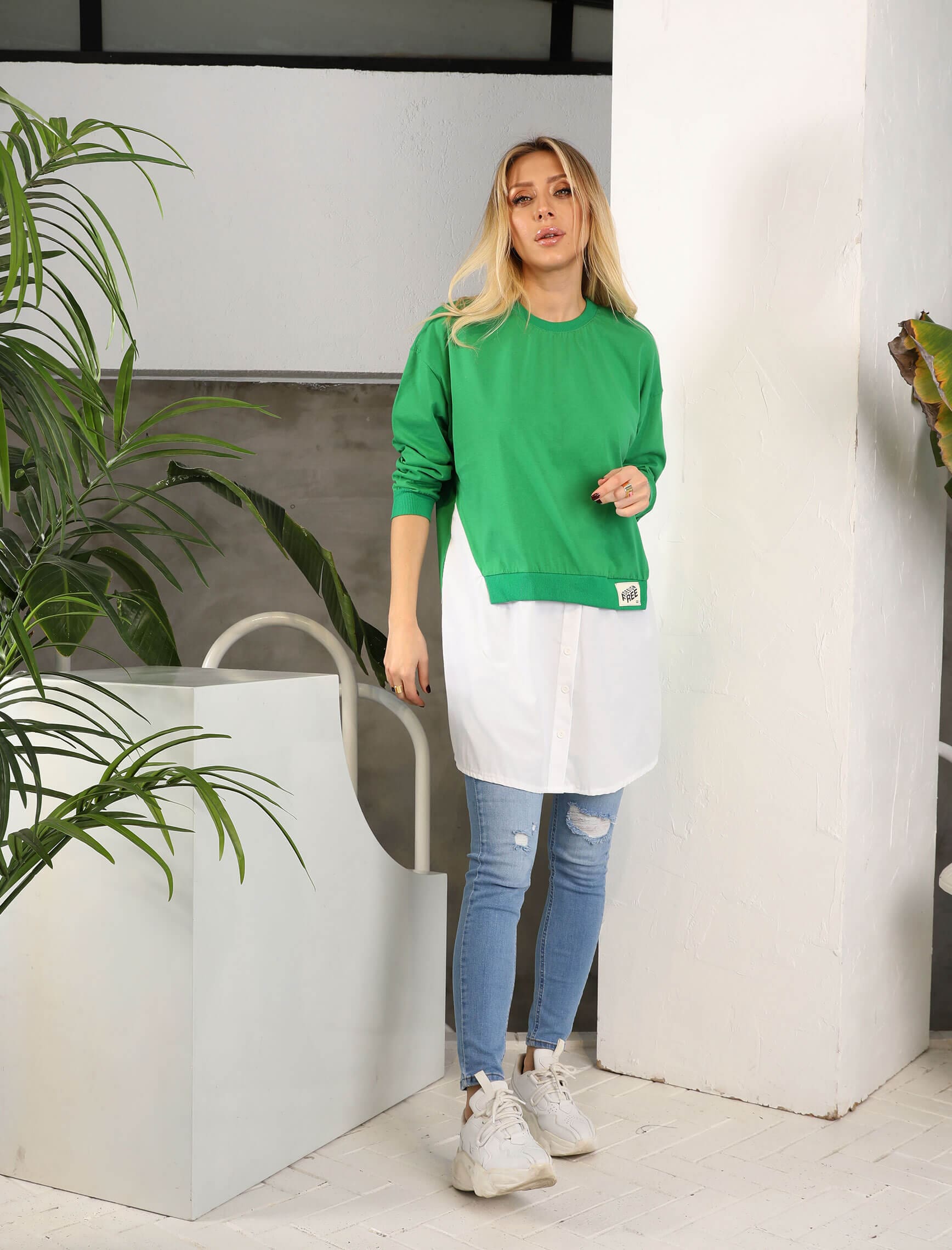 Yeşil Poplin Detay Bruno Sweat