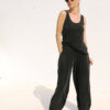 Yeşil Uzun 3 Gold Düğmeli Askılı Atlet